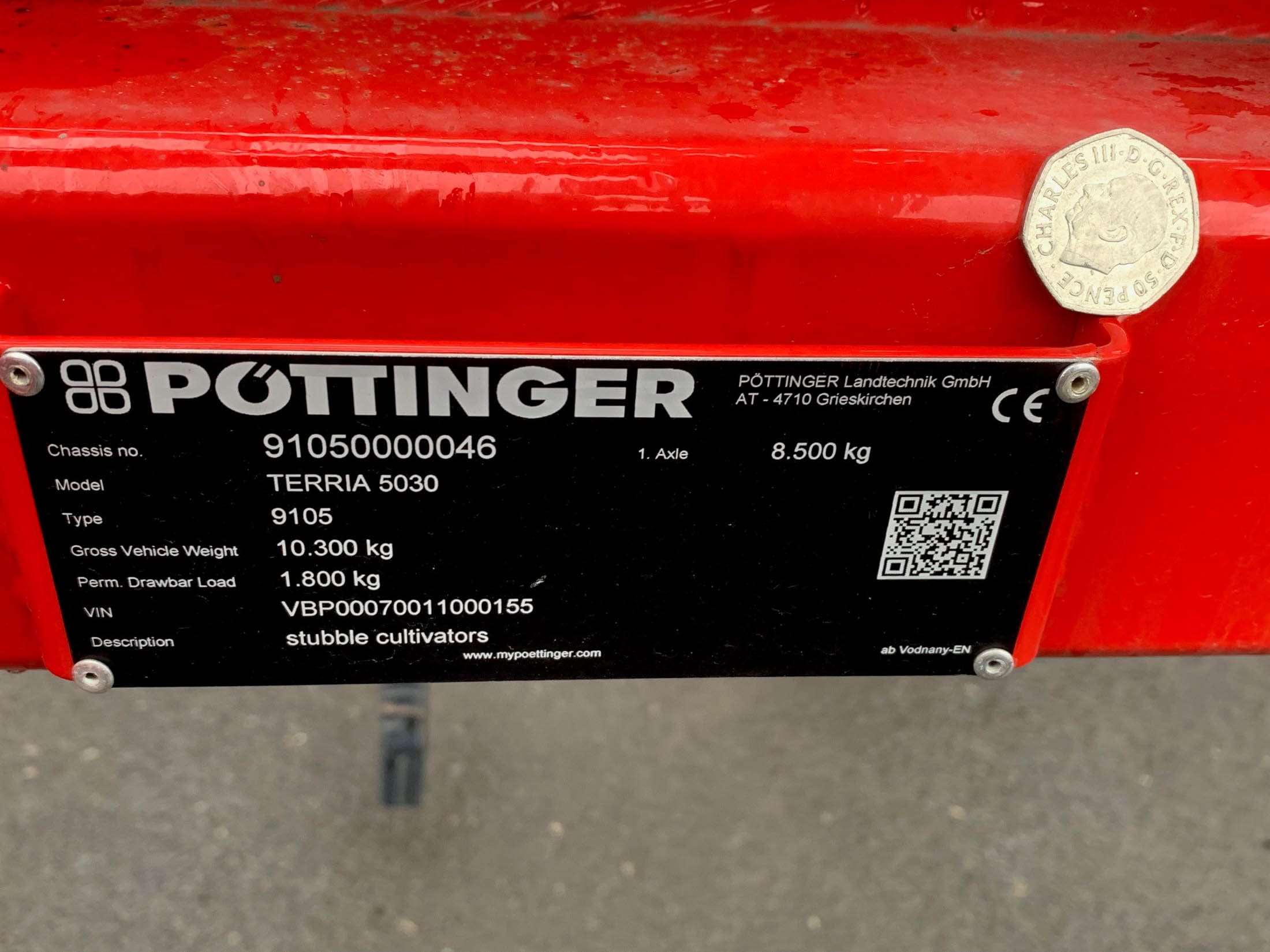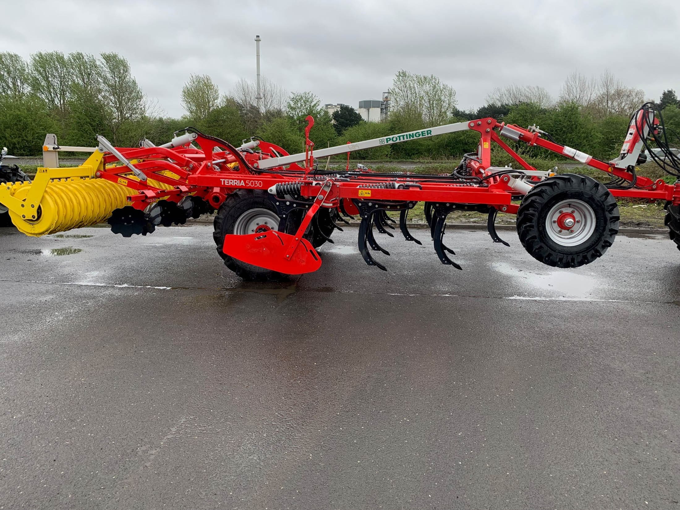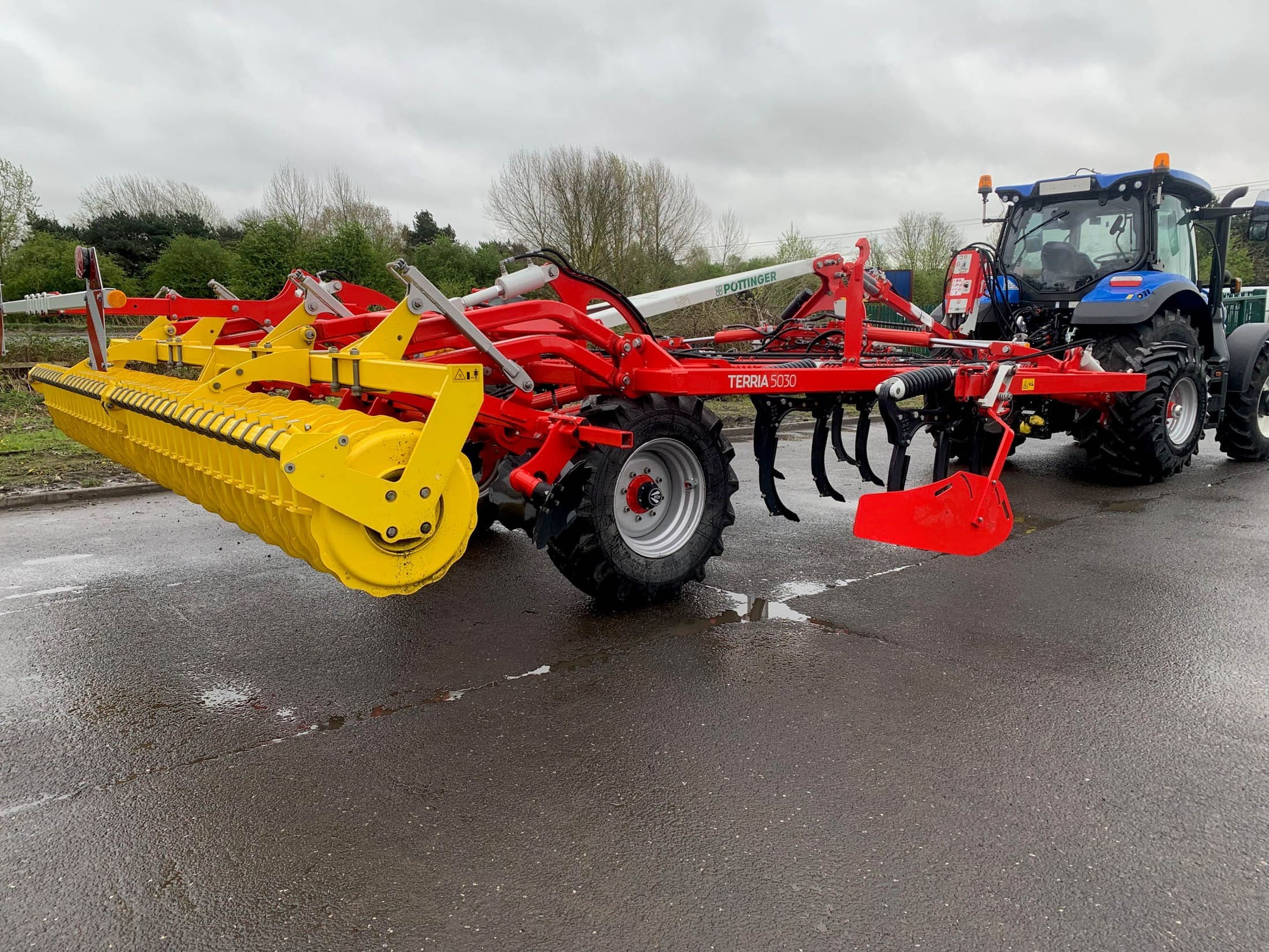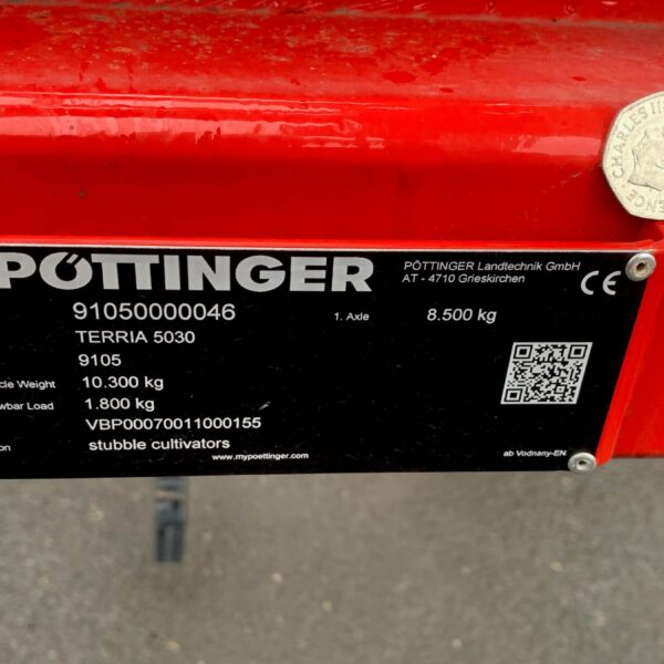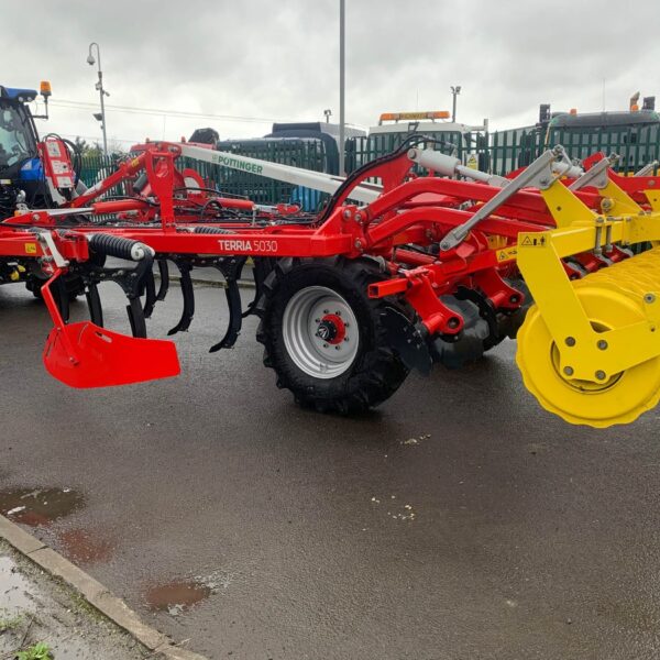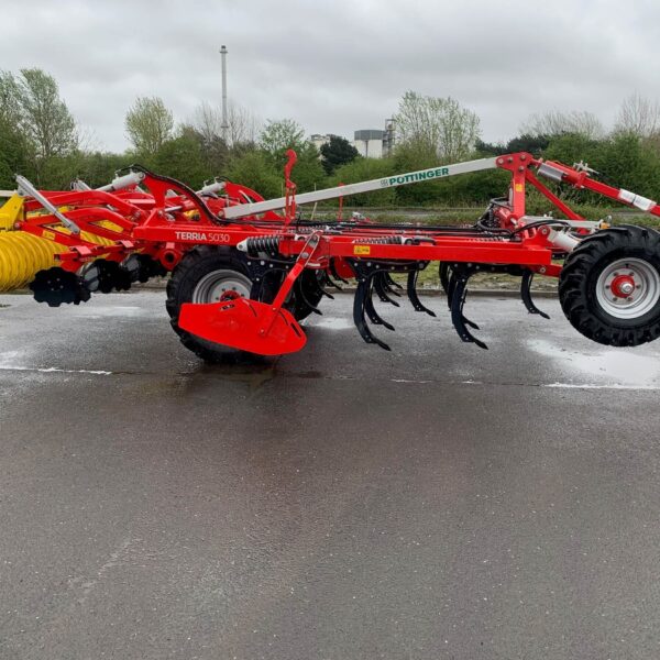 Pottinger Terria 5030 Cultivator, 5M trailed stubble cultivator, x17 tines (290mm spacing), narrow point, lights, 550-5000 pack ring roller.