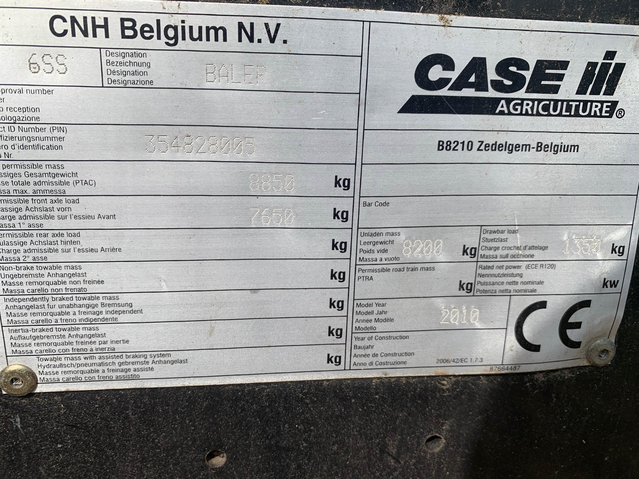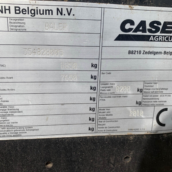 Case LB433 Baler, year 2010, 53195 bales, 120x90cm, Air Brakes, Wide Angle PTO, Bale Eject, 600/65R22 tyres, Addative kit not included.
