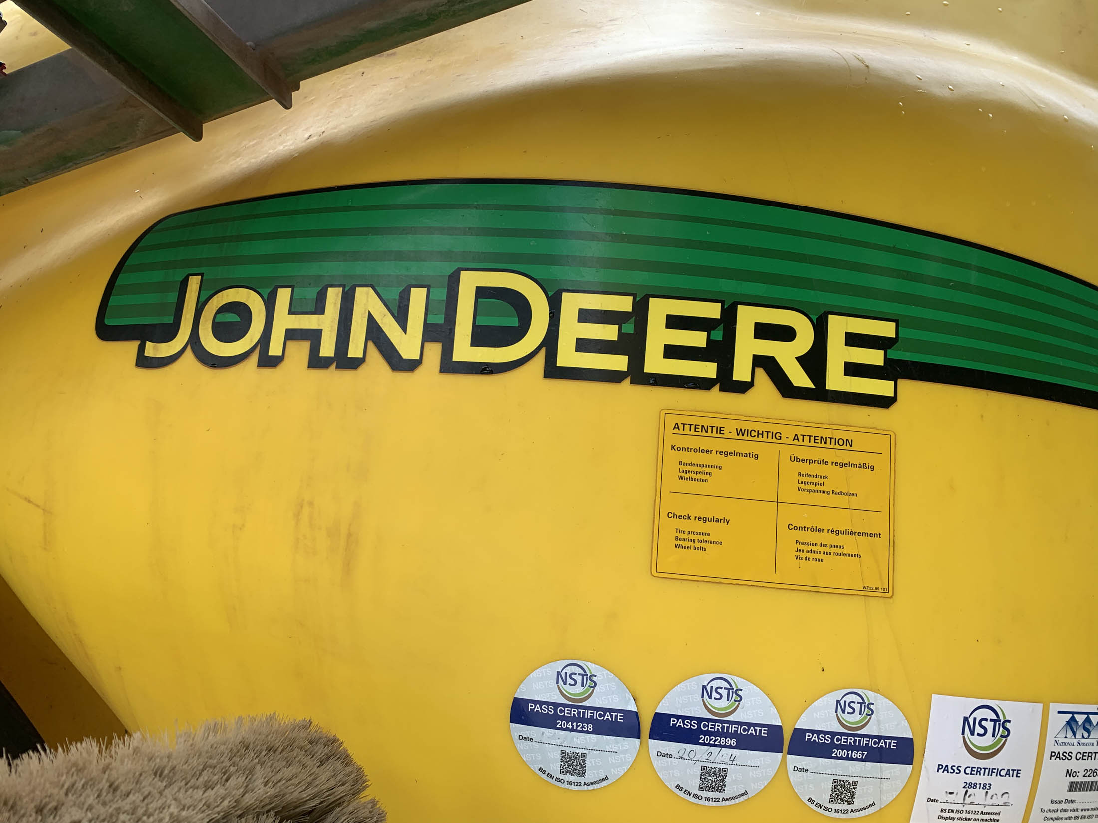 John Deere 840I, 36m 4000 Litre Trailed Sprayer, year 2013, with Quinn Nozzles, NSTS Pass Certificate Date 17/02/25, Ball Hitch Mount, 650/65R38 tyres.