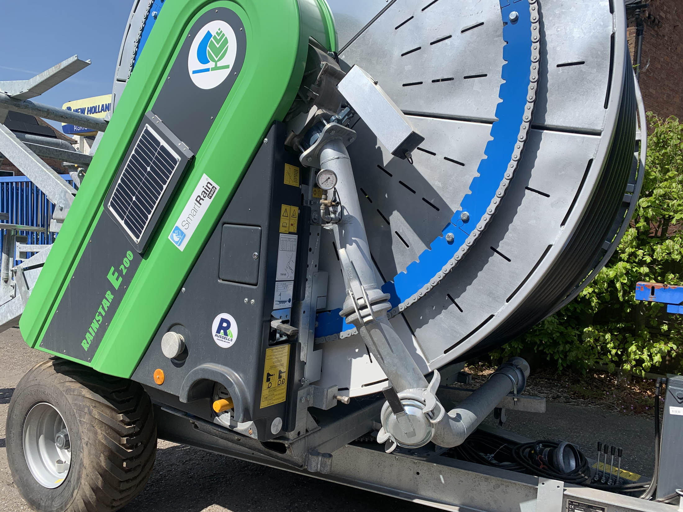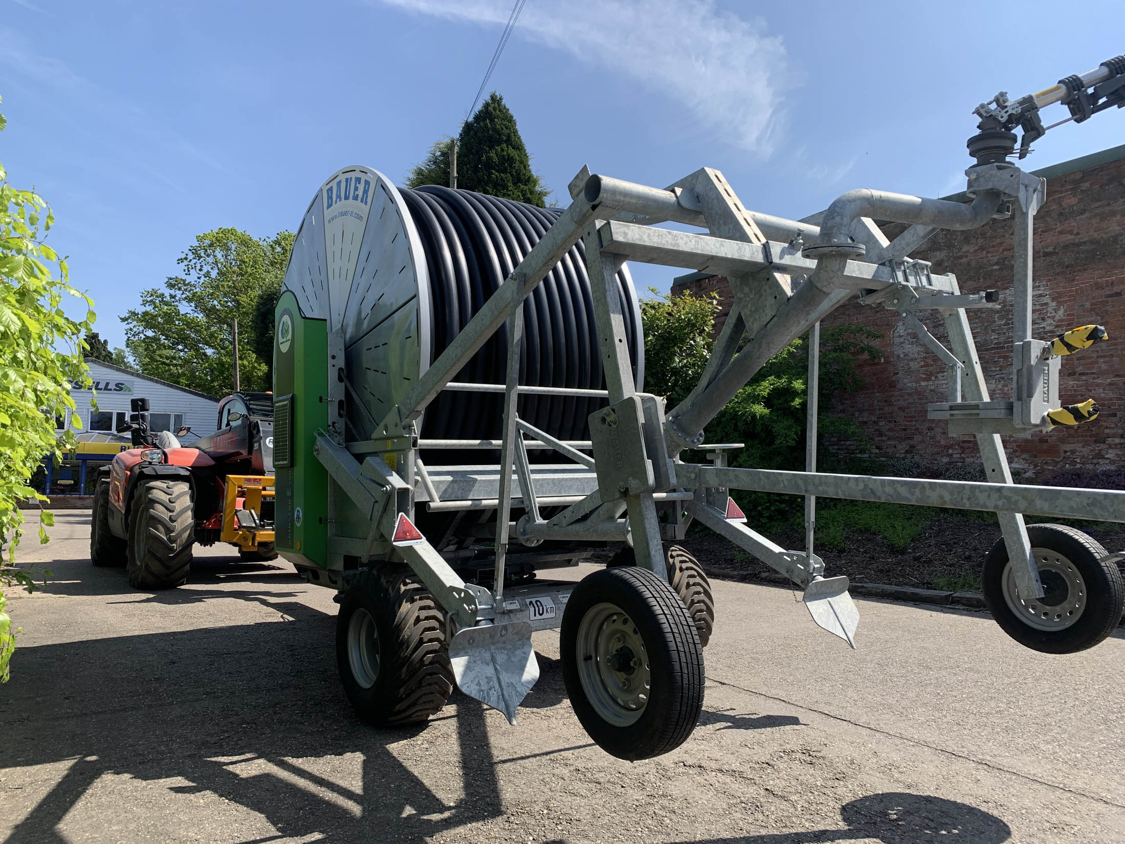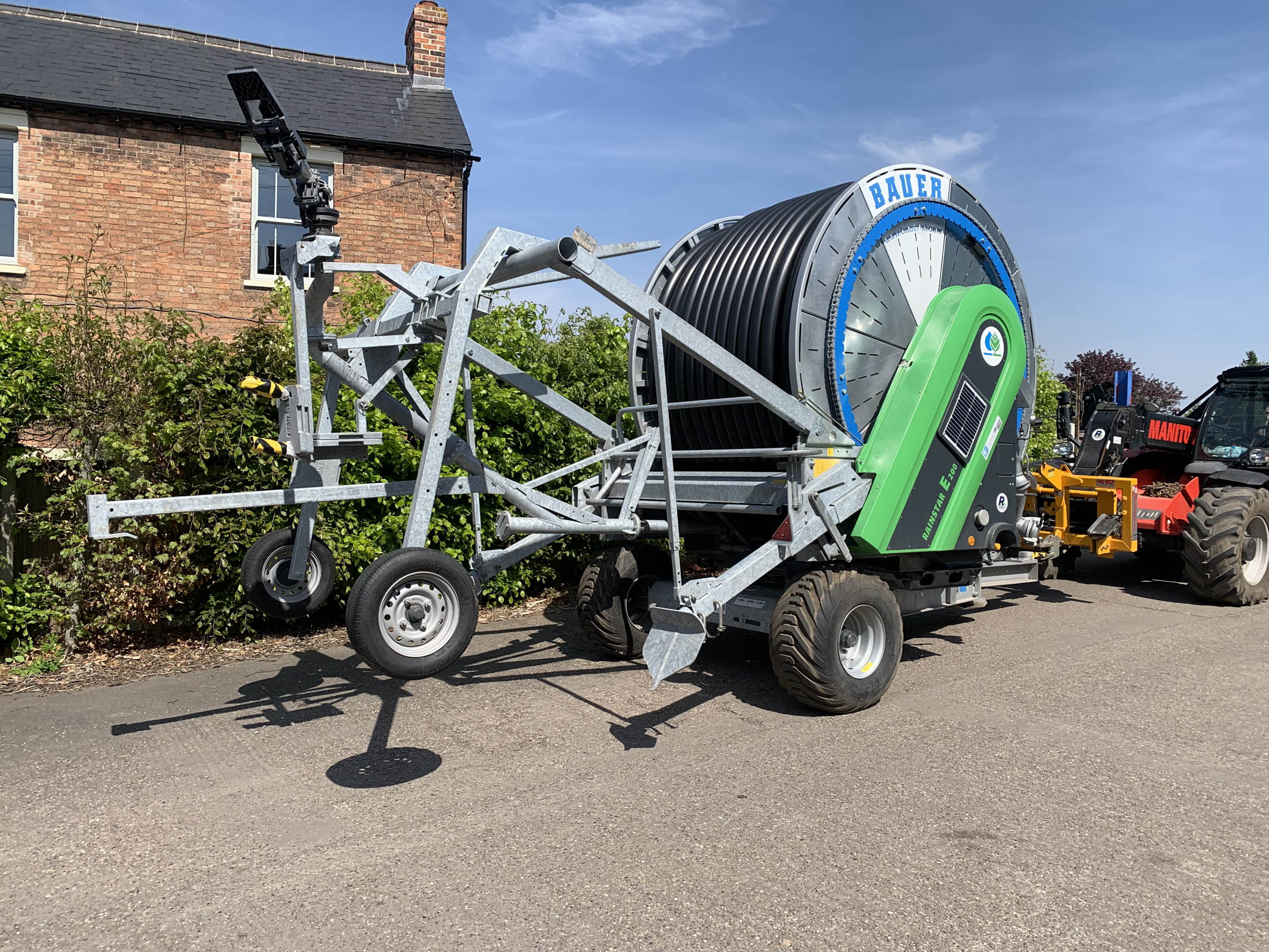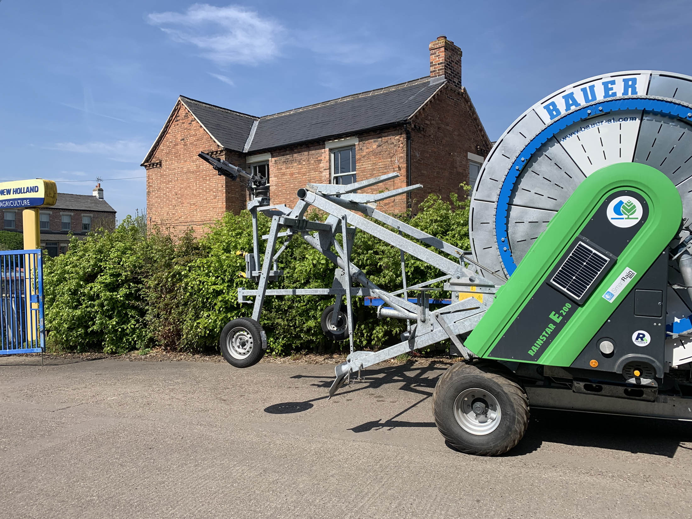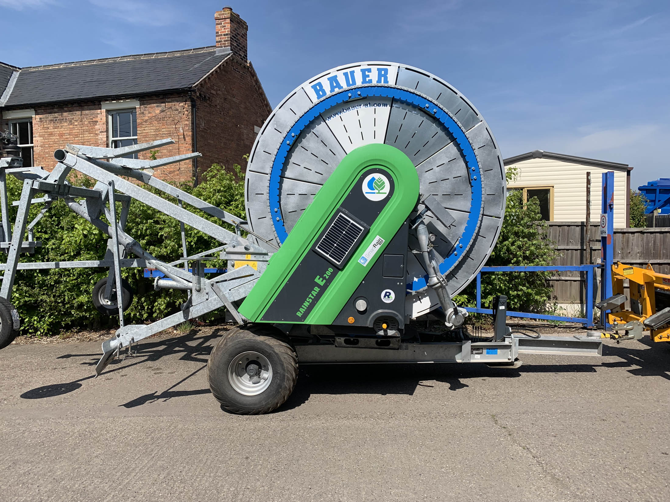 Bauer E200 Rainstar (New Generation E21) , 100-450 Pipe C/w Connection both sides, Lay Flat Connection Hose included, Ecostar 6000 4G, Filter on main water flow, Wheel cart & cart supplements, Shut off valve, Pressure sensor, Hydraulic Stand, Hydraulic Turntable, Flotation Tyres, Smart Rain READY, Closed reel core, Adjustable axle width, SR 140 Ultra Gun.