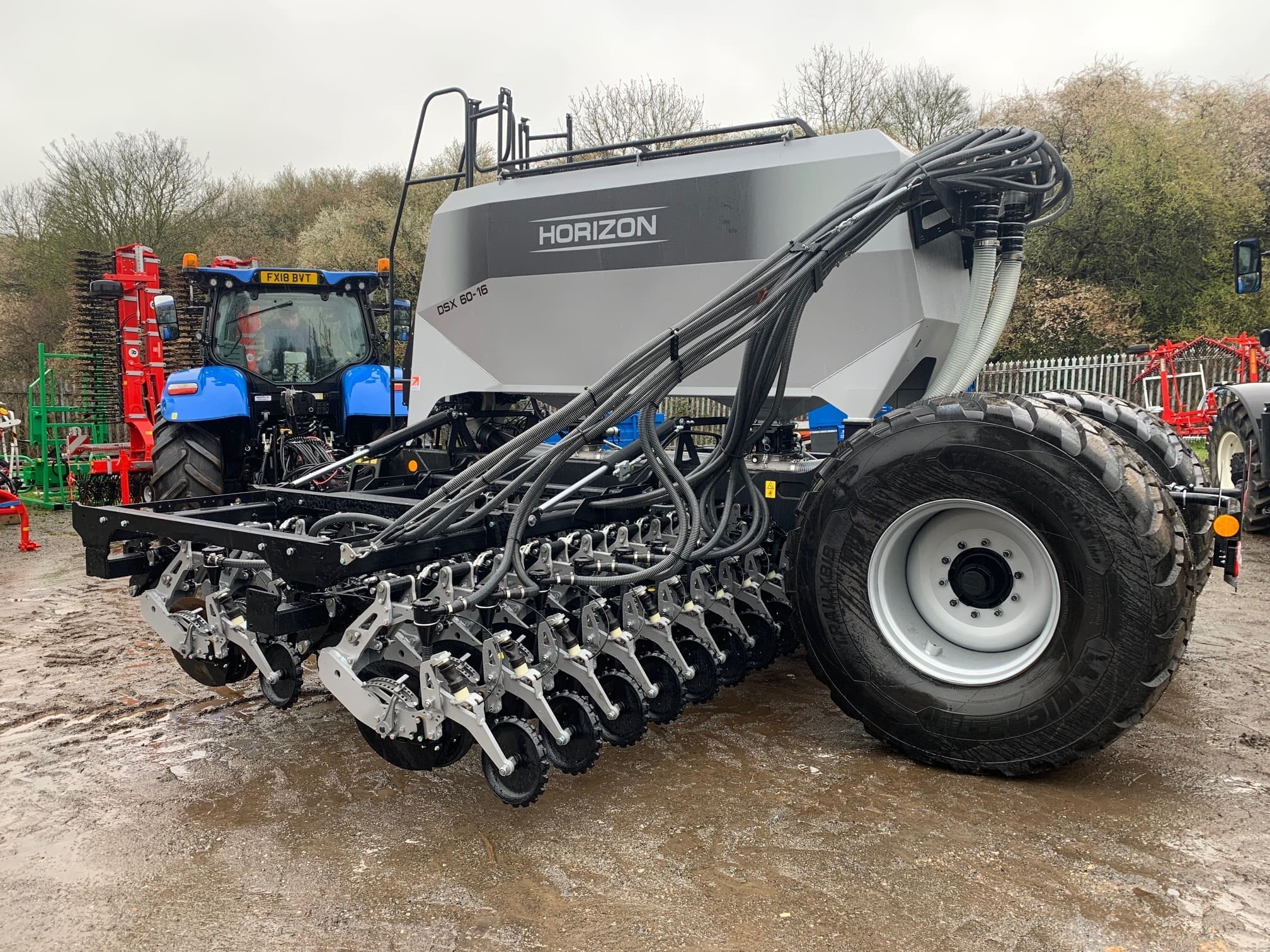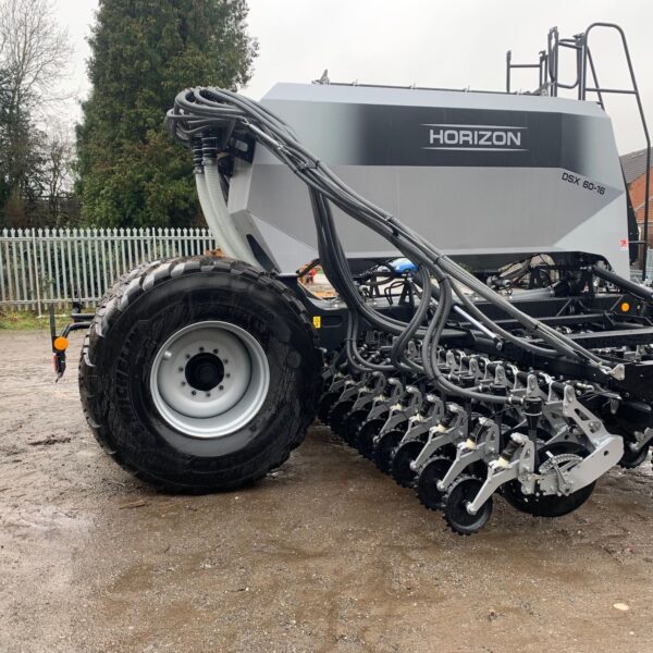 Horizon DSX 60-16 Drill, 6M Twin Hopper 60/40 split, Hydraulic Brakes, RDS Artemis controller, 36 DSX Row units, 16.7cm row spacings, 750/60R30.5 Michelin VF Tyres, Steel Fingered press wheel.