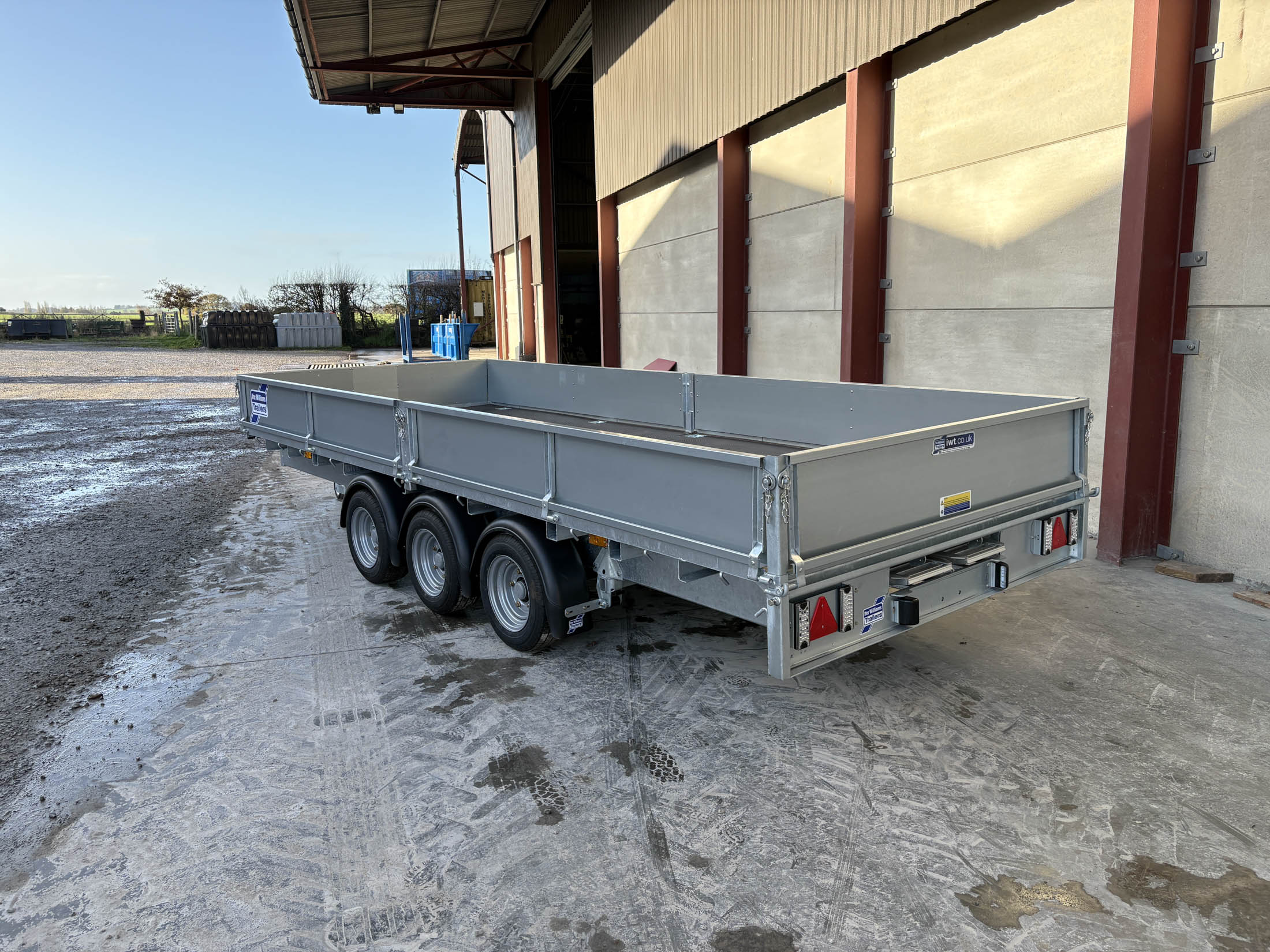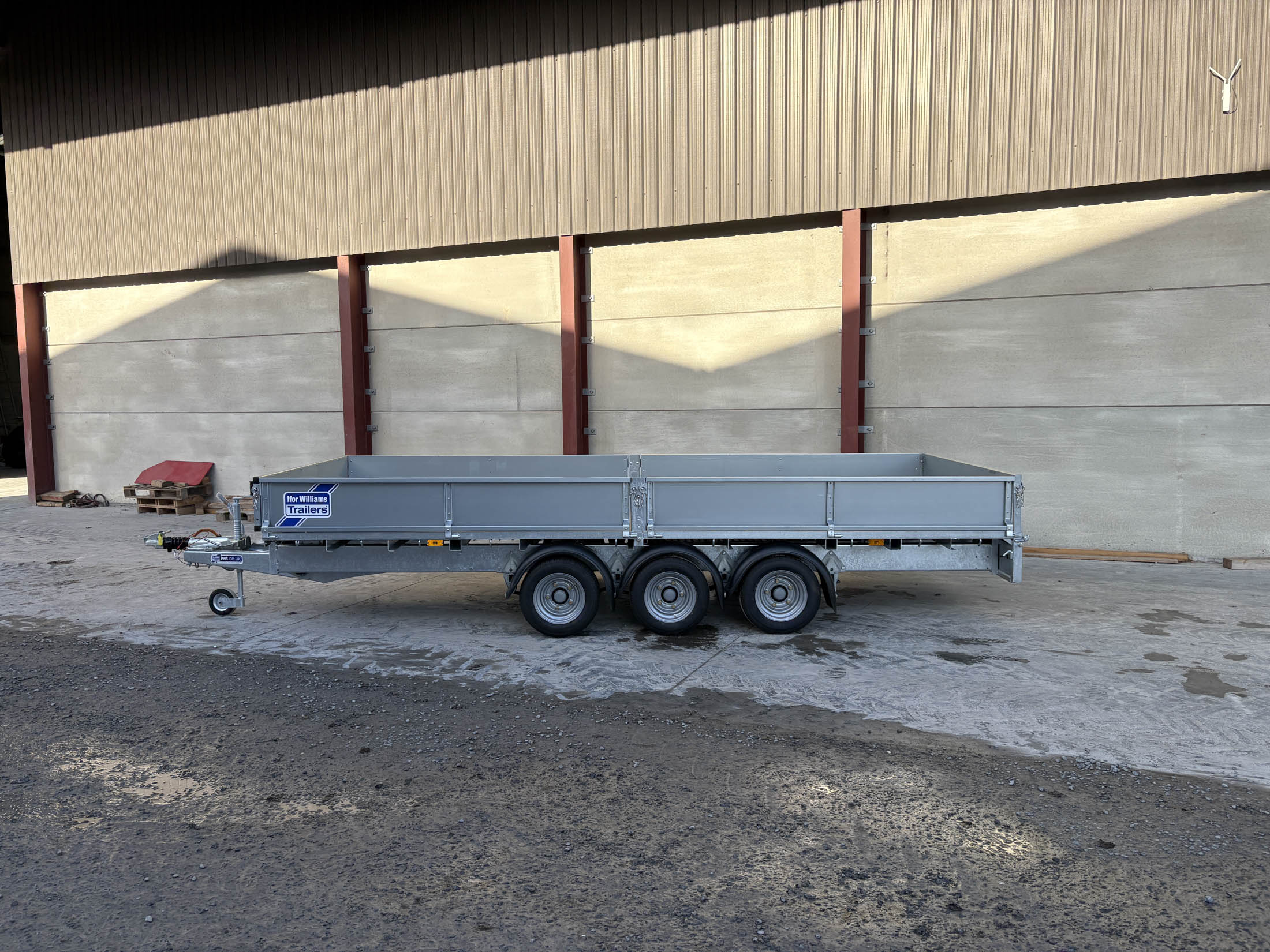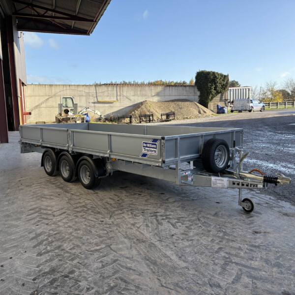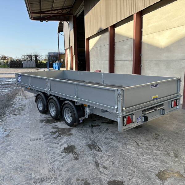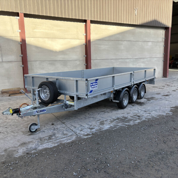 Ifor Willims LM166G3 Tri-Axle Flatbed Trailer, 2.3M, Headboard and Drop side kit, LED Lights, 10 Lashing Points, 8ft Alimnium Loading Skids.