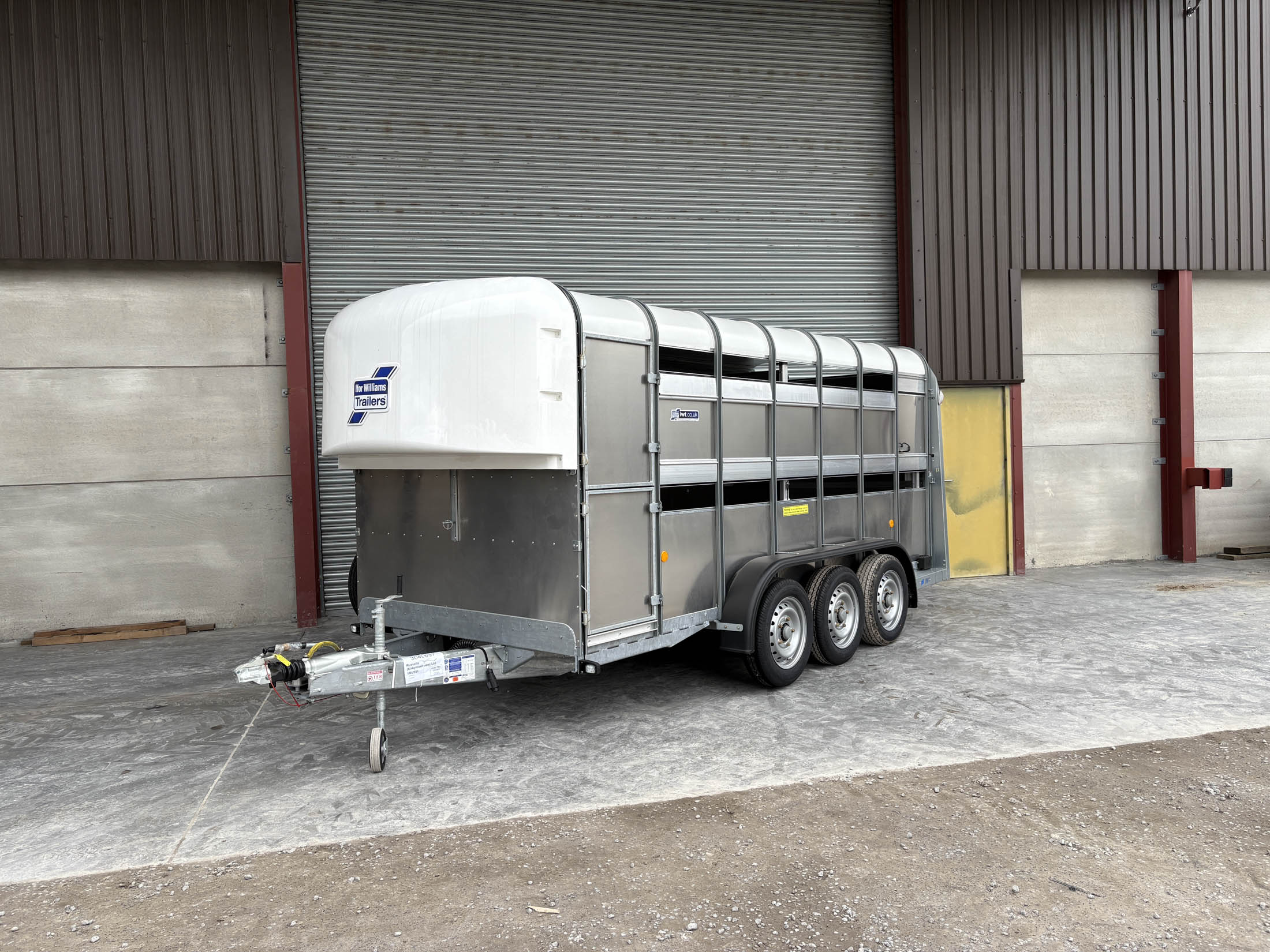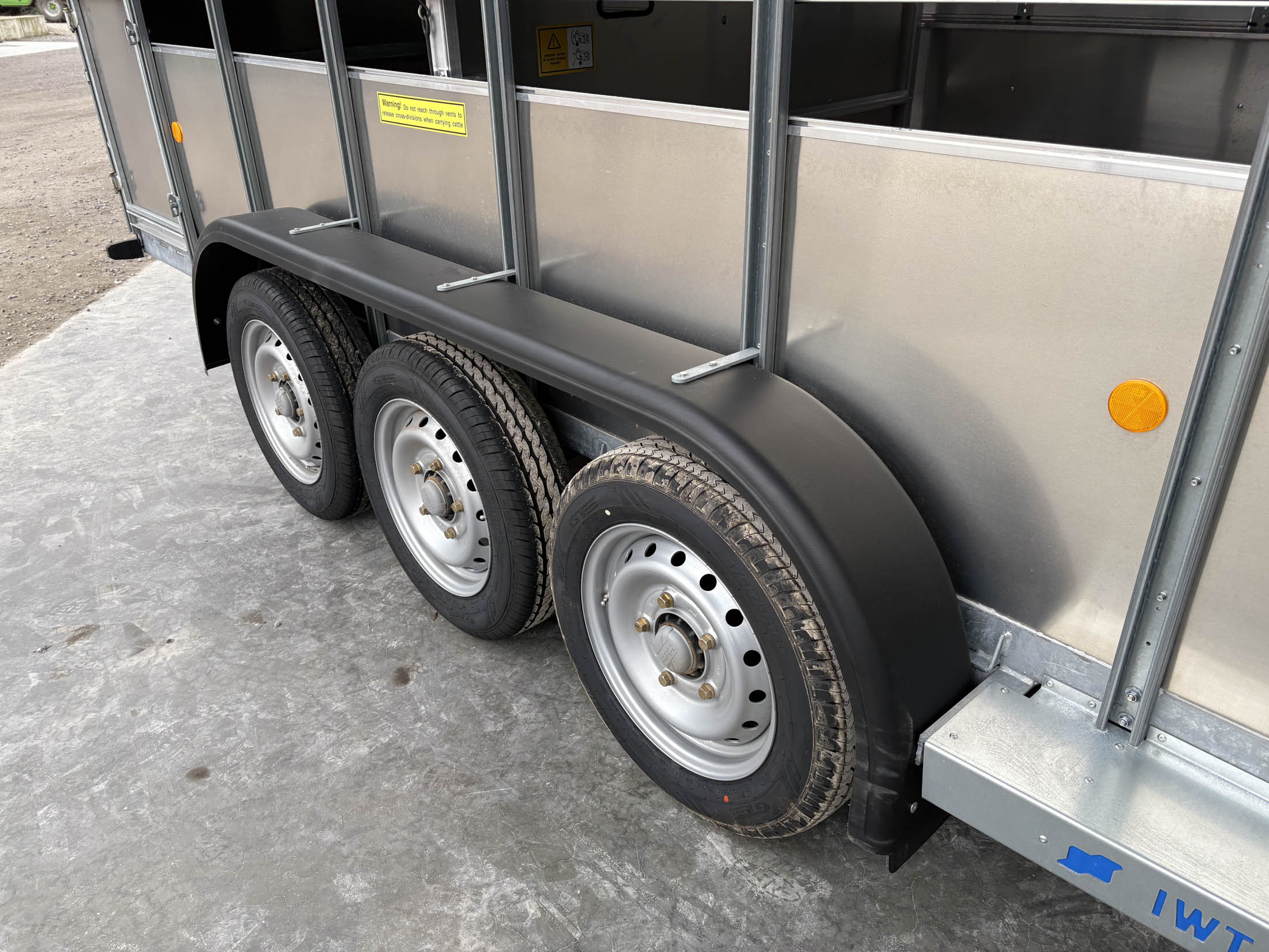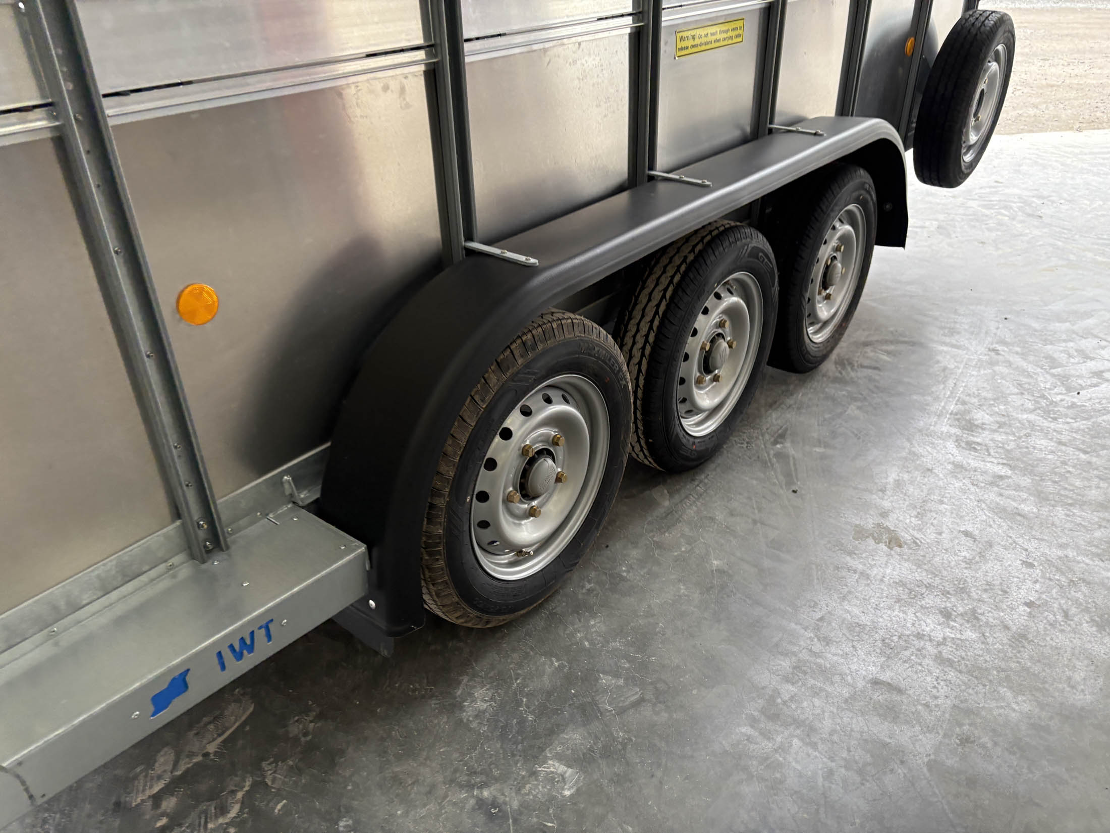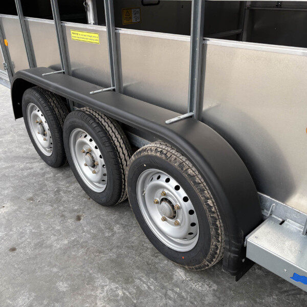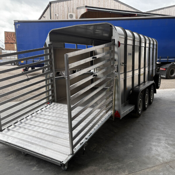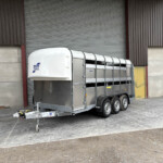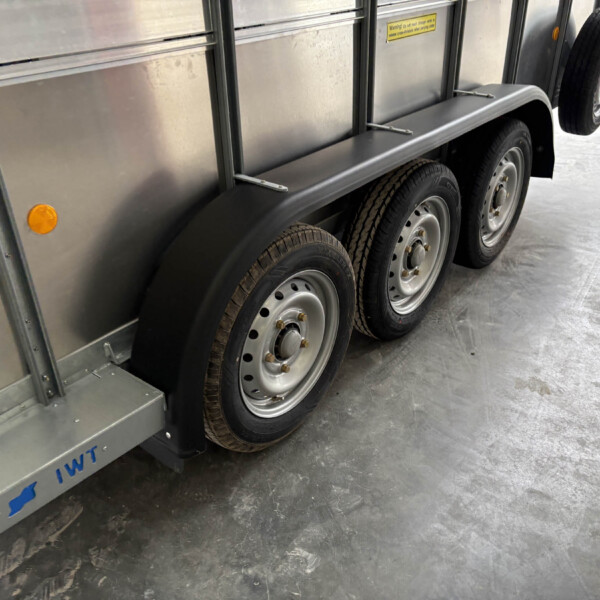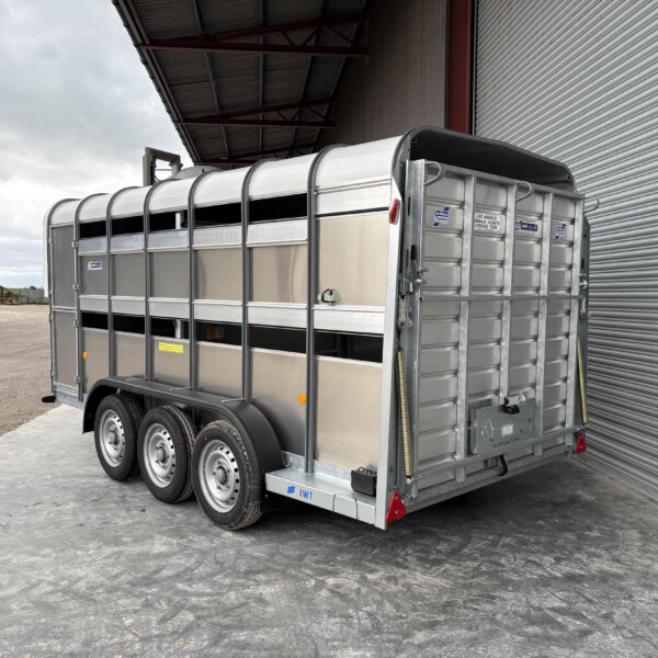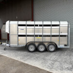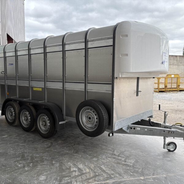TA510G 14'x6' Tri-Axle Cattle Trailer, Opening Wind Deflector Kit, Dividing Gate, Upper & Lower Vents, Spare Wheel.