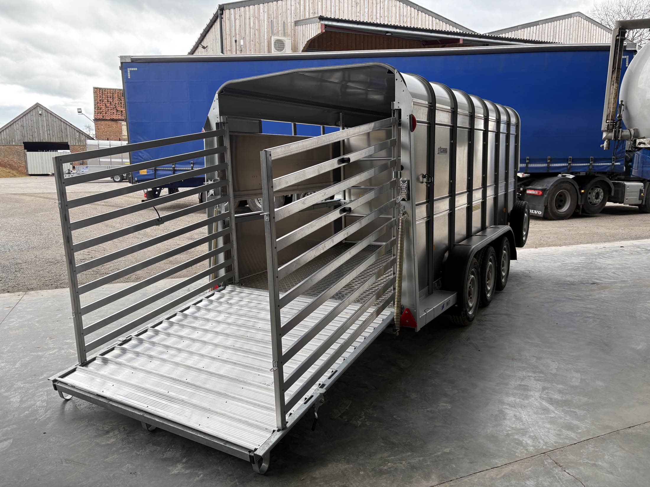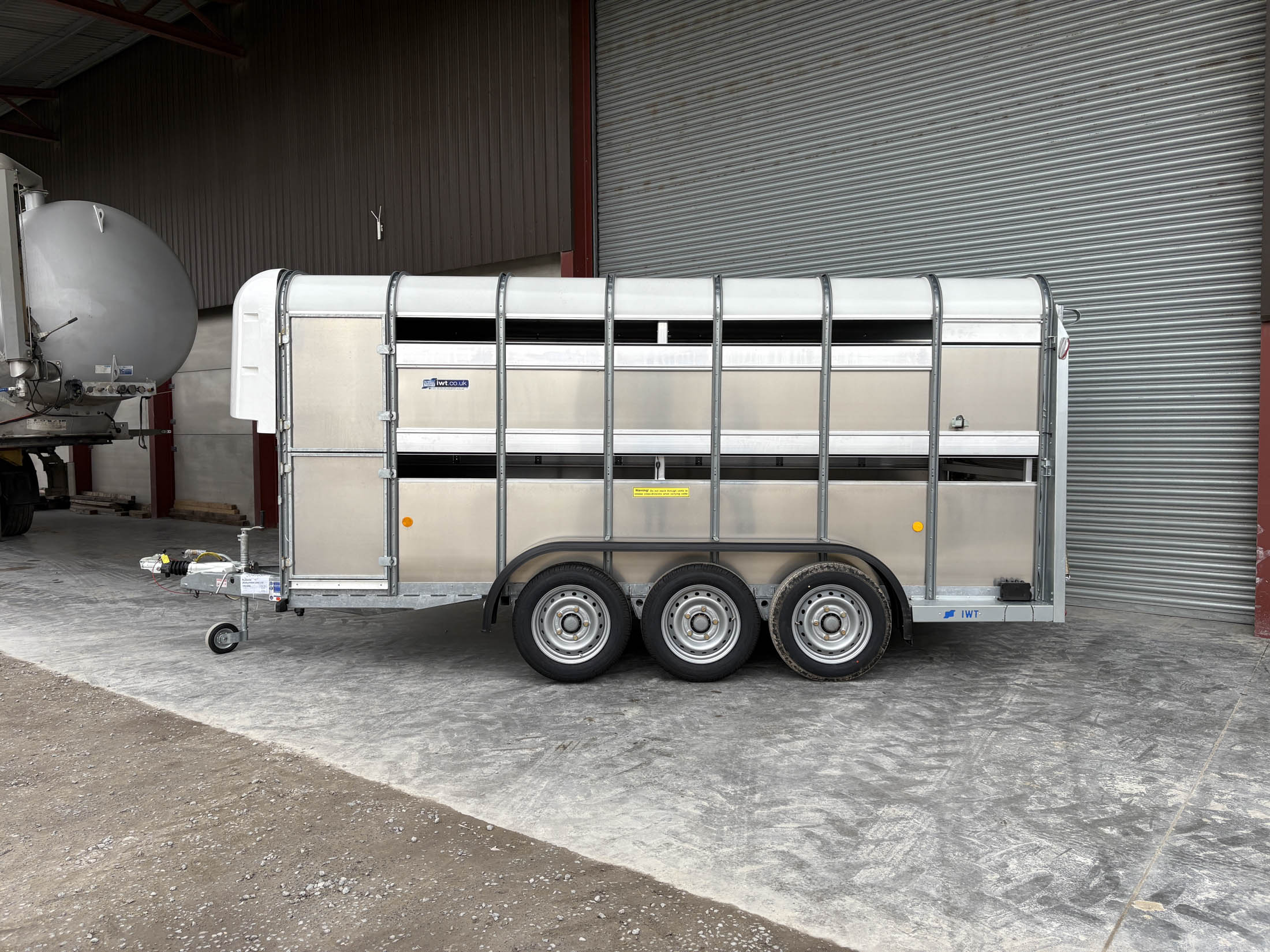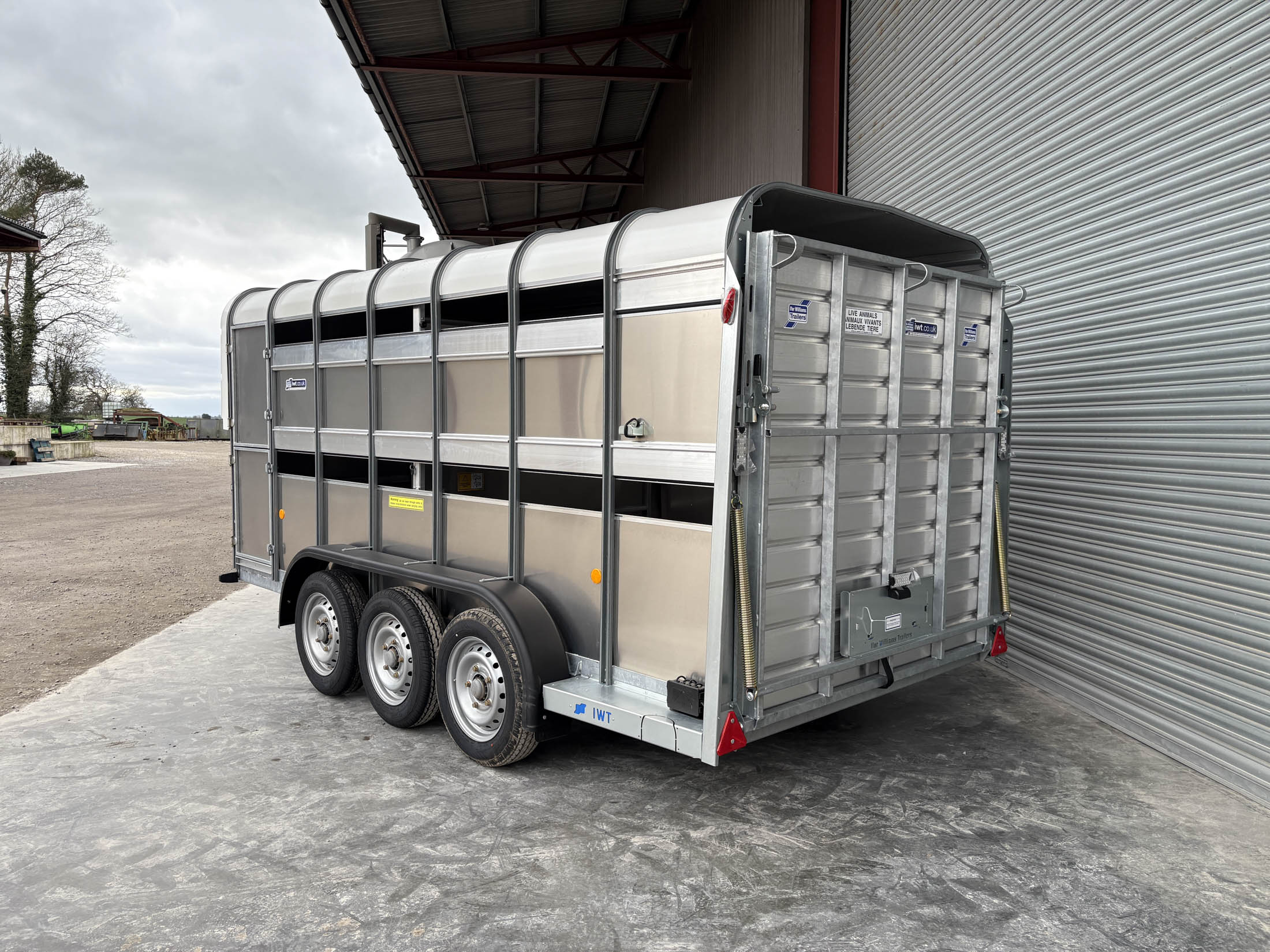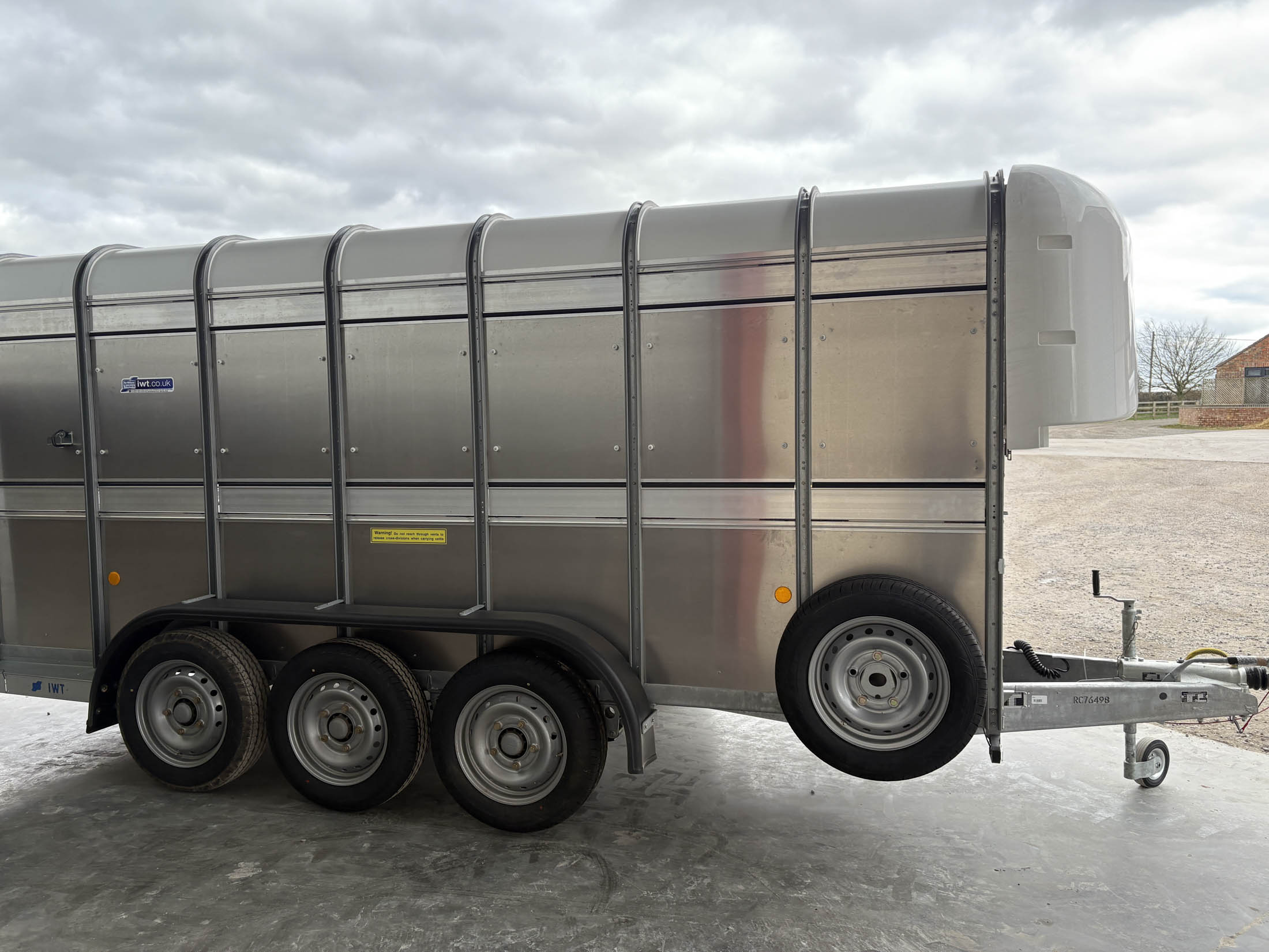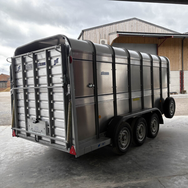 TA510G 14'x6' Tri-Axle Cattle Trailer, Opening Wind Deflector Kit, Dividing Gate, Upper & Lower Vents, Spare Wheel.