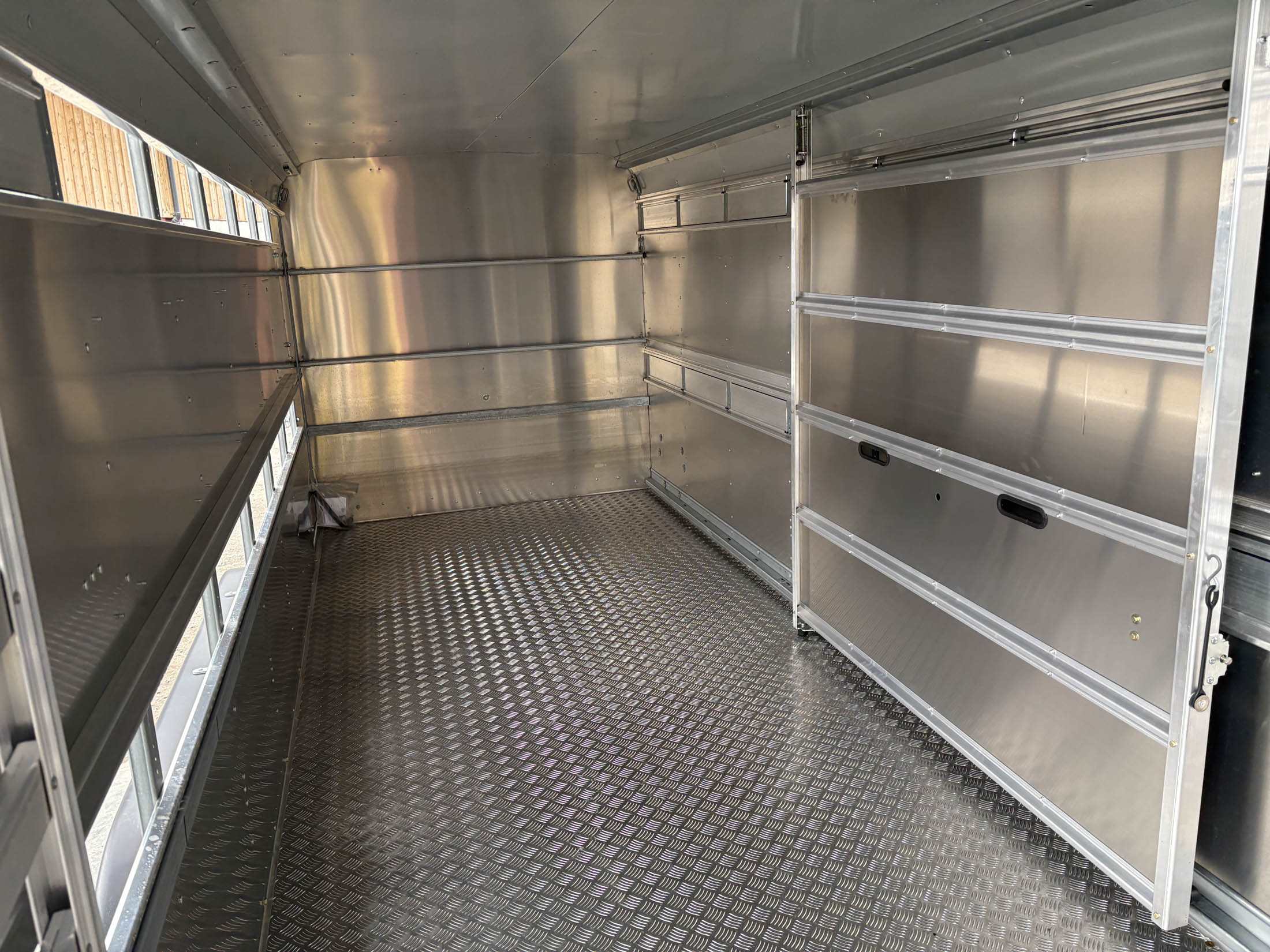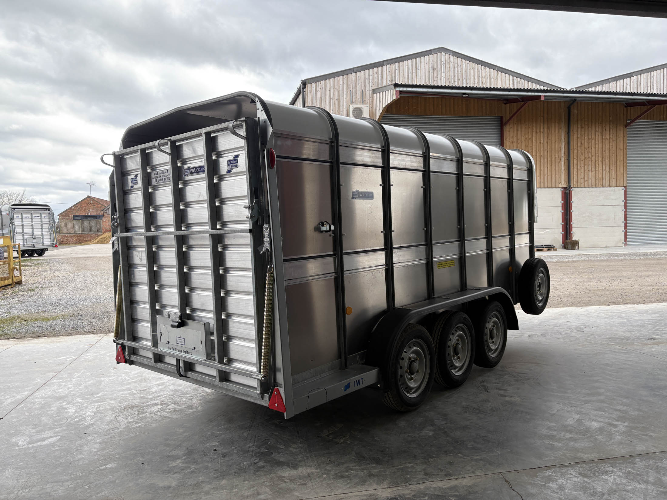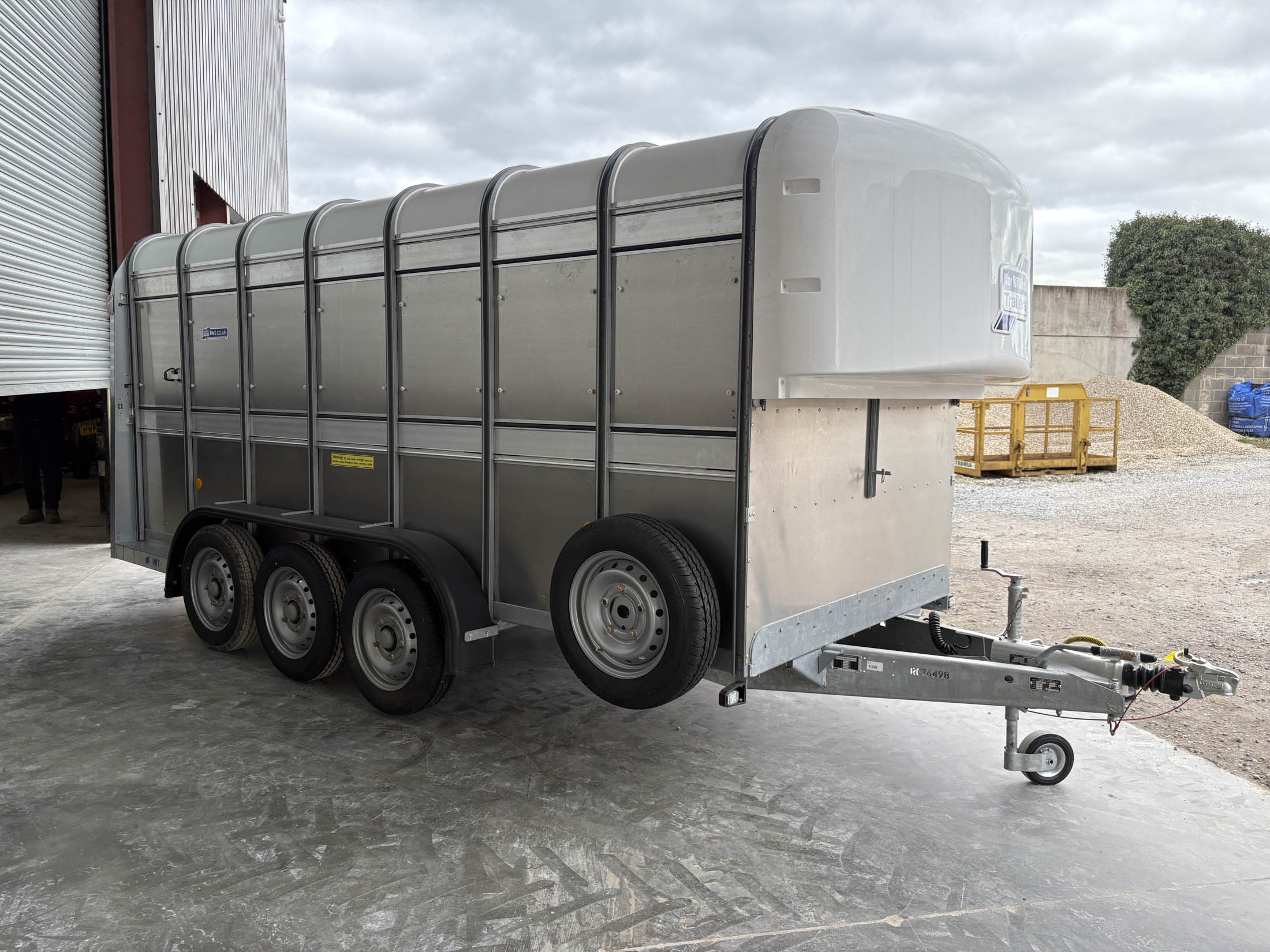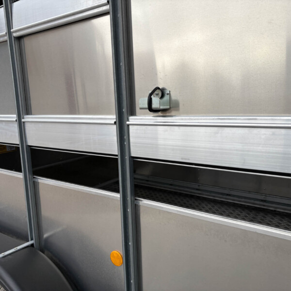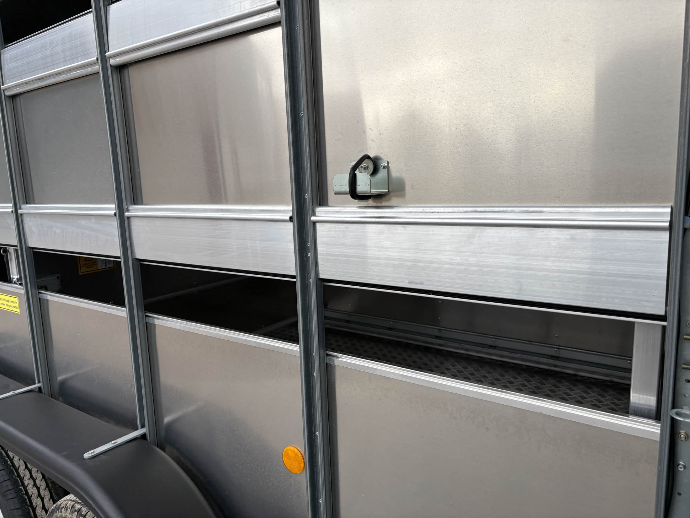 TA510G 14'x6' Tri-Axle Cattle Trailer, Opening Wind Deflector Kit, Dividing Gate, Upper & Lower Vents, Spare Wheel.