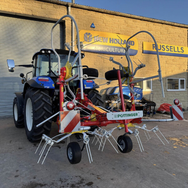 Pottinger HIT 4.54 Tedder, 5.4m working width, 4 Rotor Tedder, Mechanical Fenceline Adjustment, Shock Absorber