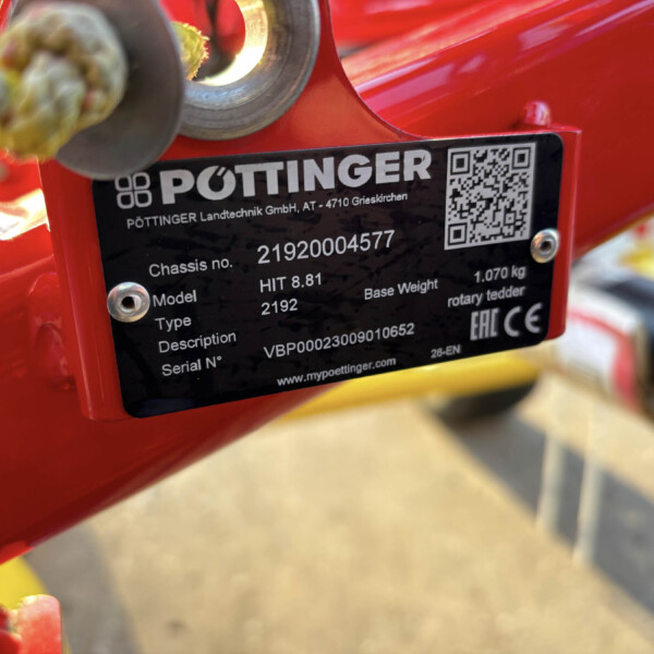 Pottinger HIT 8.81 8 Rotor Tedder, 7.8m working width, Mechanical Fenceline Adjustment.