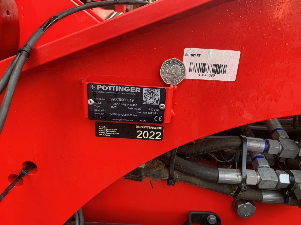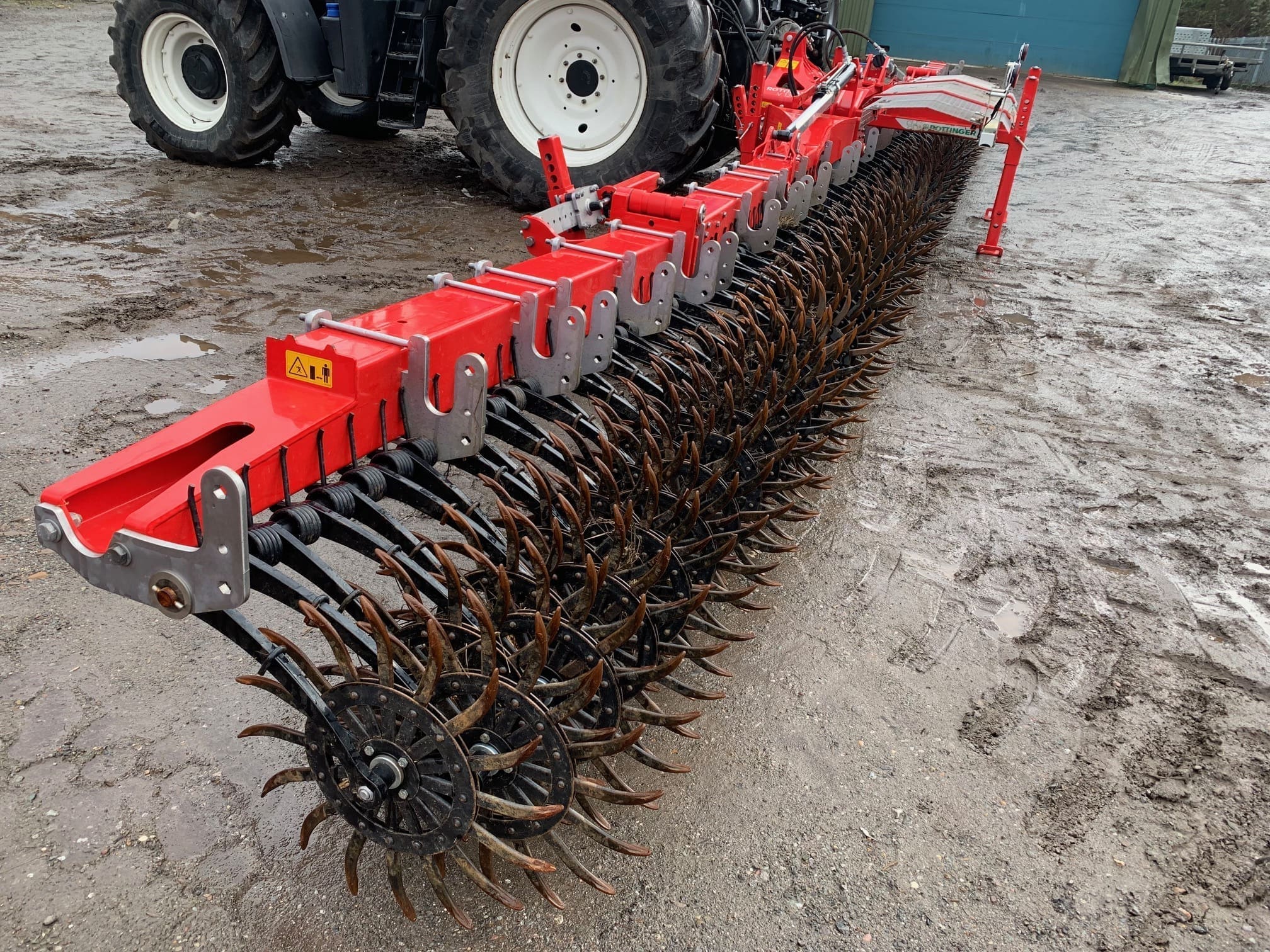 Pottinger Rotocare 12400, 12.4M Rotary Hoe, 138 Rotary hoe stars, Hyd wheel adjustment, cylinder guard, Warning signs and lighting.
