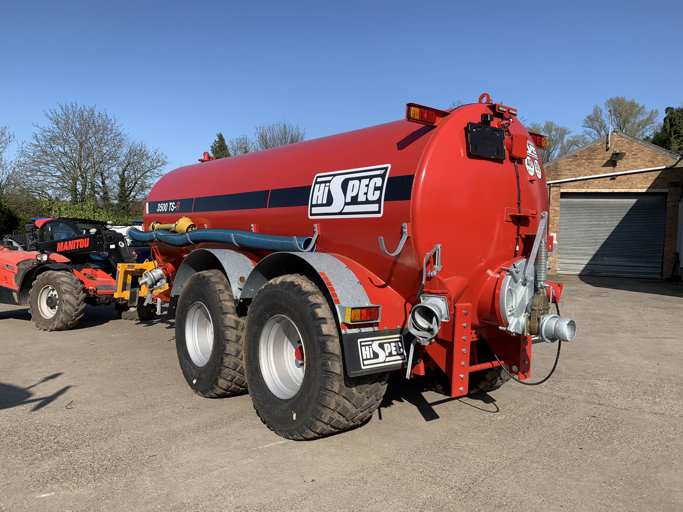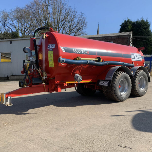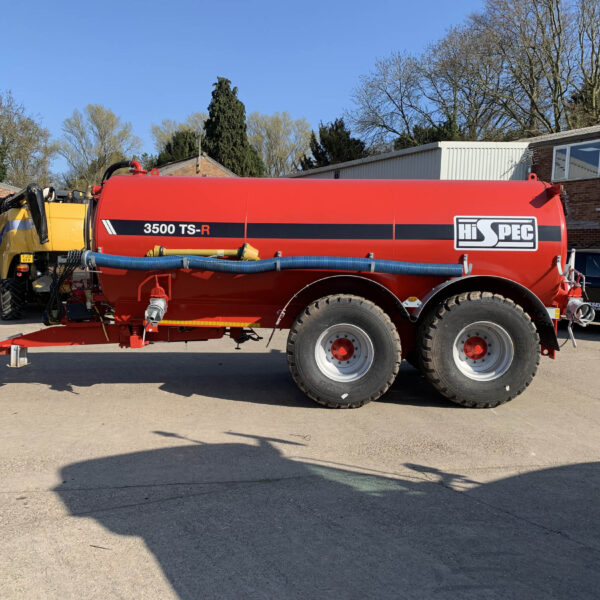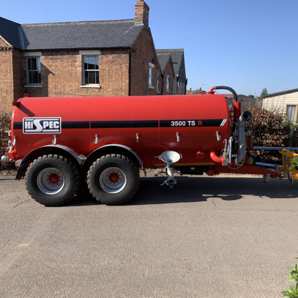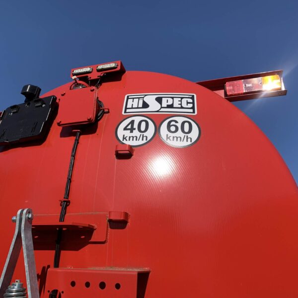 Hi-Spec 3500 TS-R Tanker, year 2023, 3500TS-R Tandem Axle Semi Recessed on 710/50 R26.5 wheels, LED Strob beacon, LED road light and number plate light, full sight tube, extra 6" fill point c/w QA, galv bolt on 6" hose, wide pto, 14,000 pump in lieu of 11,000,6" autofill c/w tripod, galv mudguards,airbrakes, injector 4 pt linkage, BKT 710/50R26.5