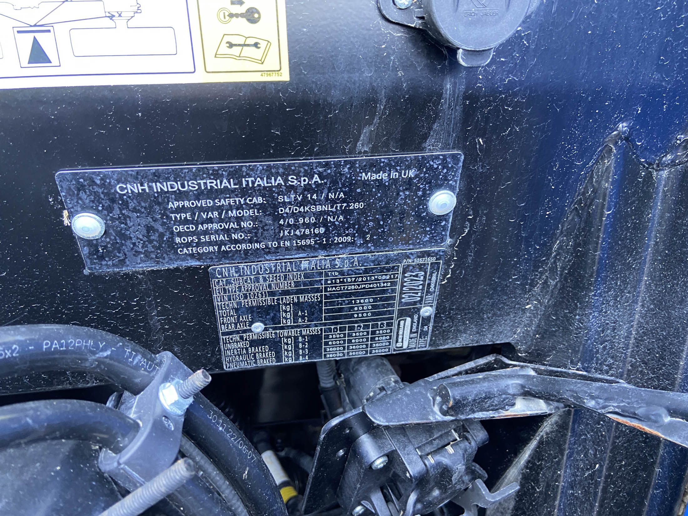 New Holland T7.260, year 2023, 1338 hours, Power Command Classic, 50kph, Intelliview Touchscreen, Front linkage and couplers, 2x Mid Mount Valves, Radar, AGR and VR, ISO Power Beyond, ISOBUS Socket, 4 remotes, Bar Axle, Beacon, 120L Pump, Bluetooth Radio, High Mounted Roadlights, 650/65R42 Fixed & 540/65R30 tyres.