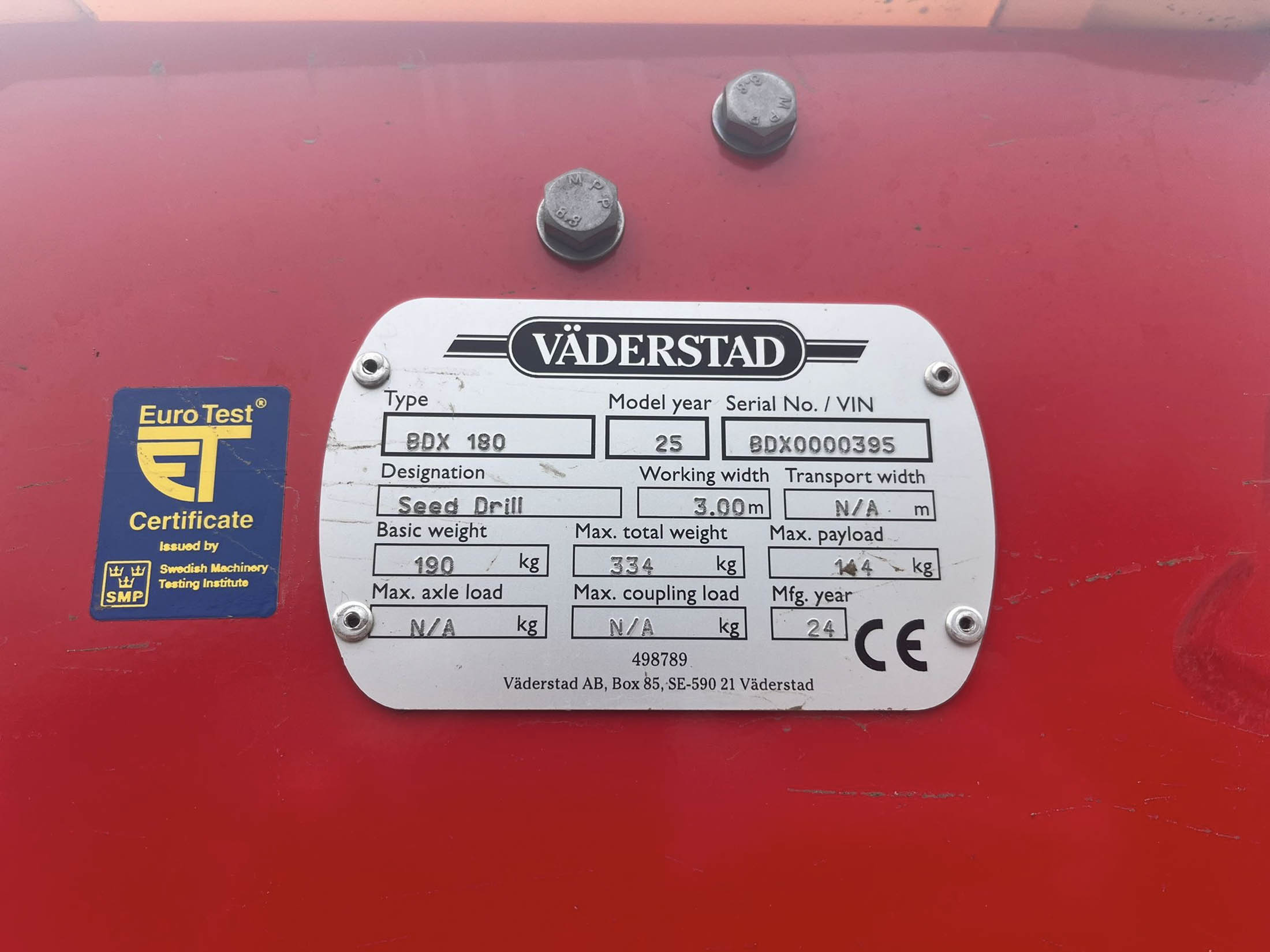 Vaderstad BDX 180 Biodrill, 2025, To suit Topdown 300.