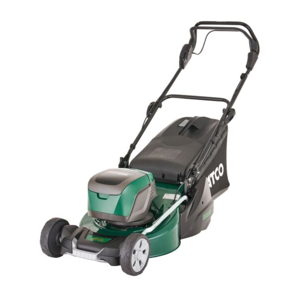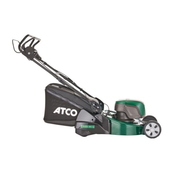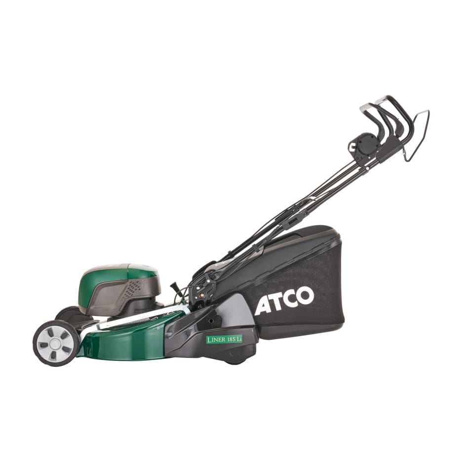 The ATCO Liner 18sLi rear roller lawnmower offers all the power of a petrol but with the convenience of a cordless! It boasts a 48V-battery system matching the same performance as a petrol. The Liner 16s Li has many key features including a stripe producing rear roller, self propelled drive system, 46cm (18") cut, single lever cutting height adjustment and 55-litre grass collector.