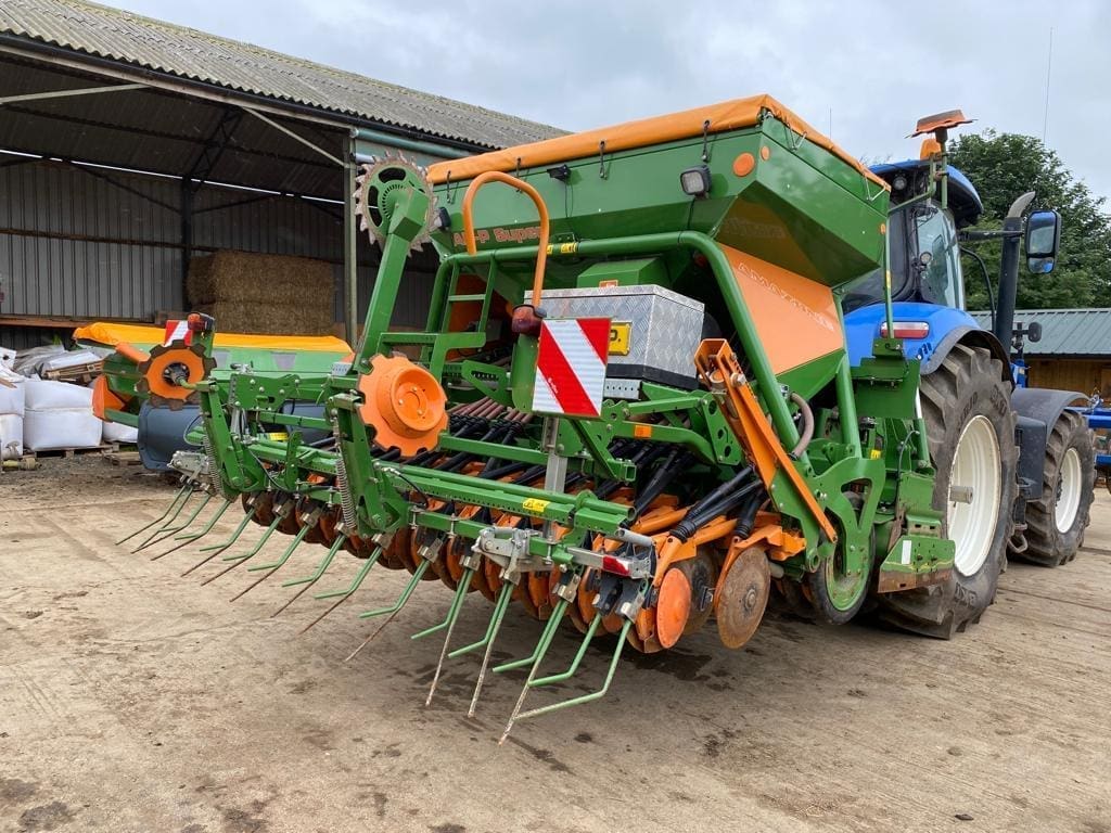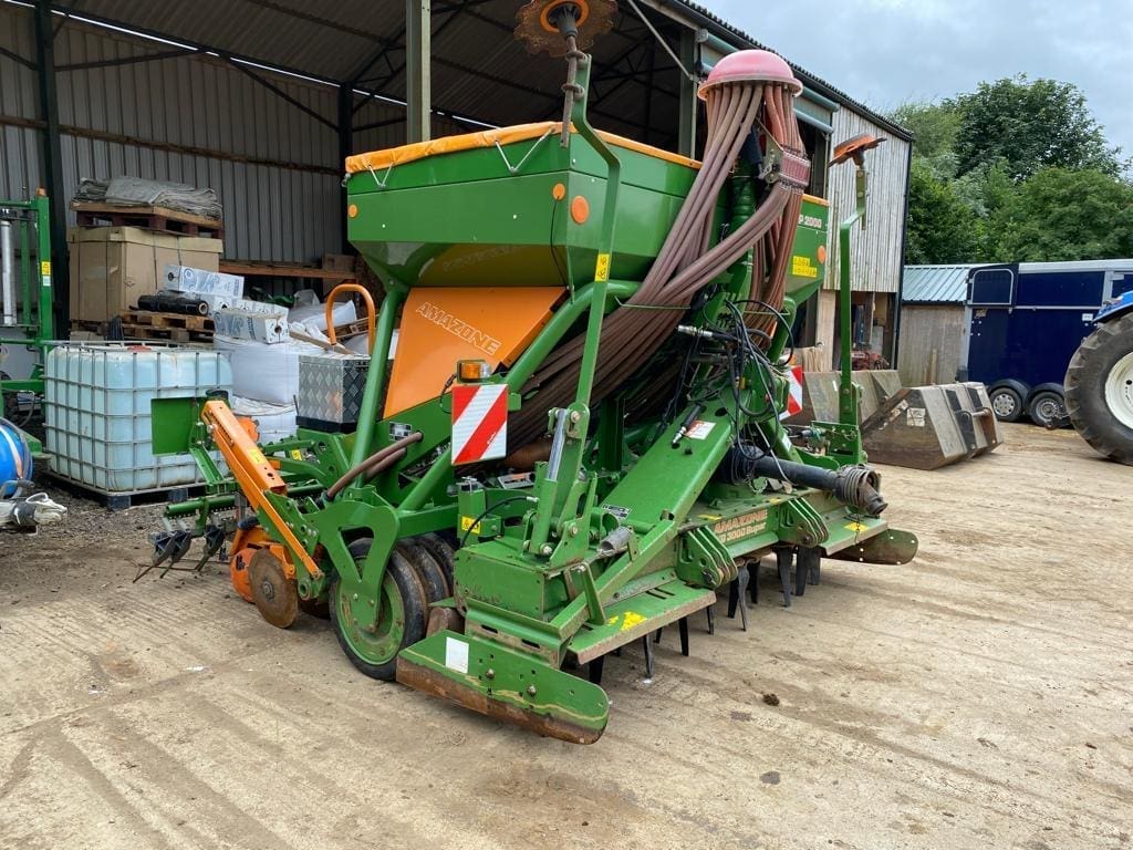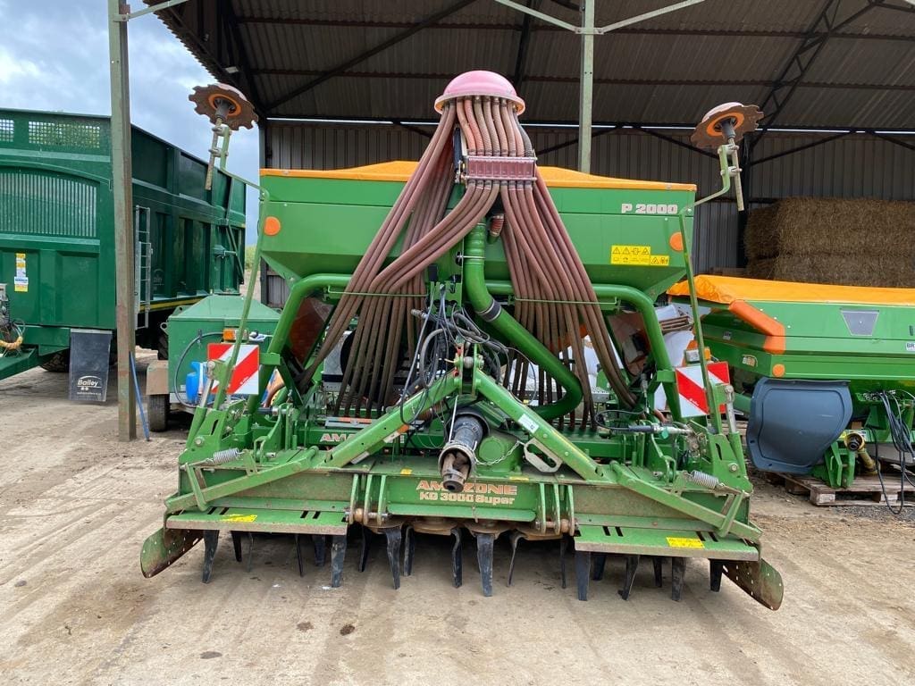 Amazone AD-P 303 Super 3m Combi Drill, year 2014, KG3000 power harrow c/w new quick fit tines, rubber ring packer roller, disc coulters, following harrow, pre-emergence, & bout markers, transport lights, 789HA.