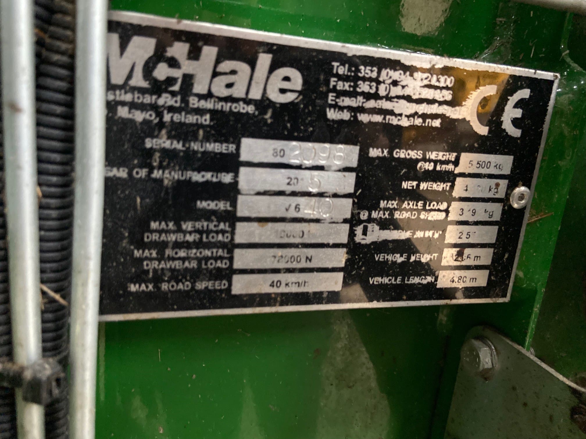 McHale V640 Round Baler, year 2015, 29,000 bales, no brakes.