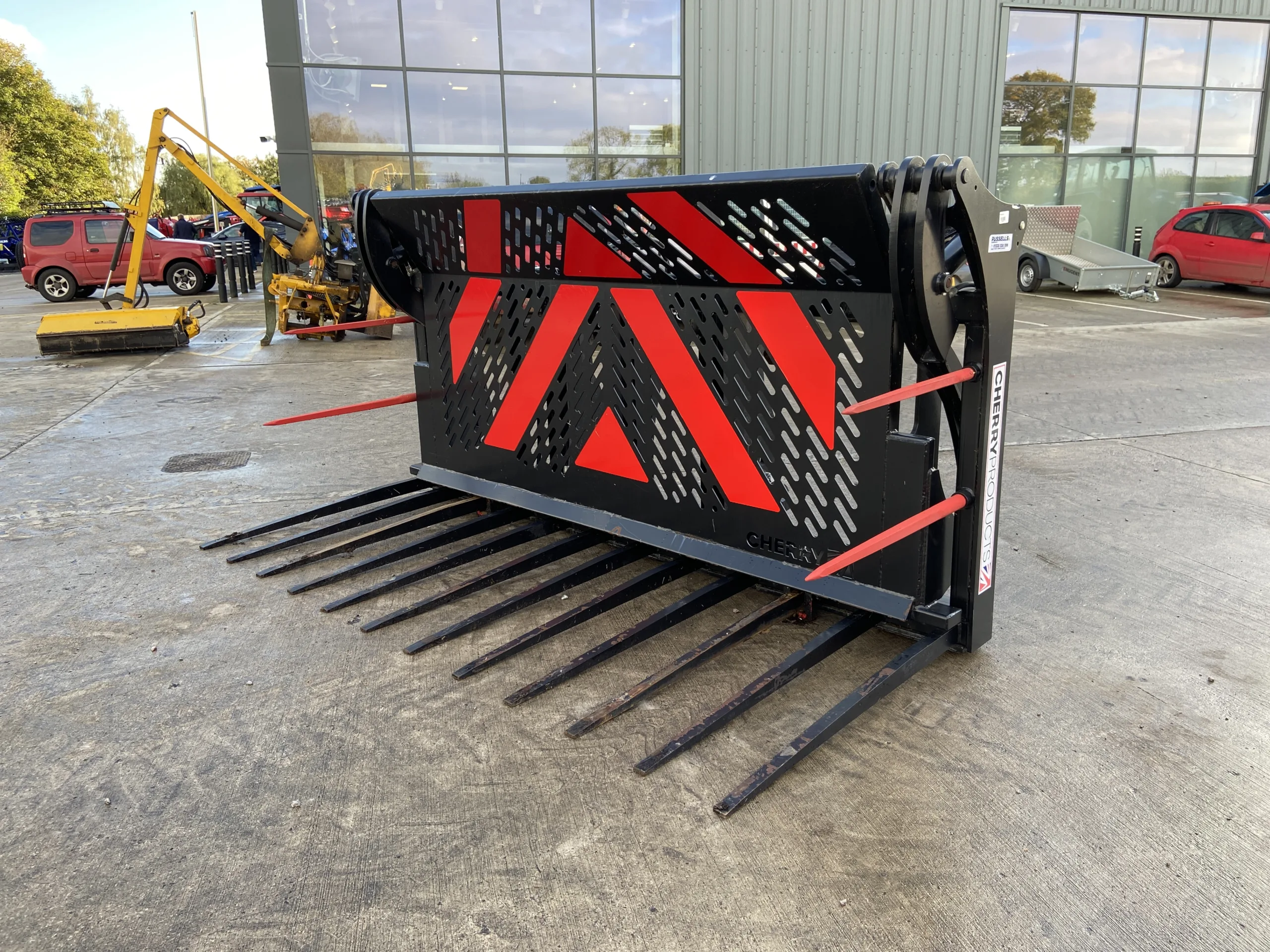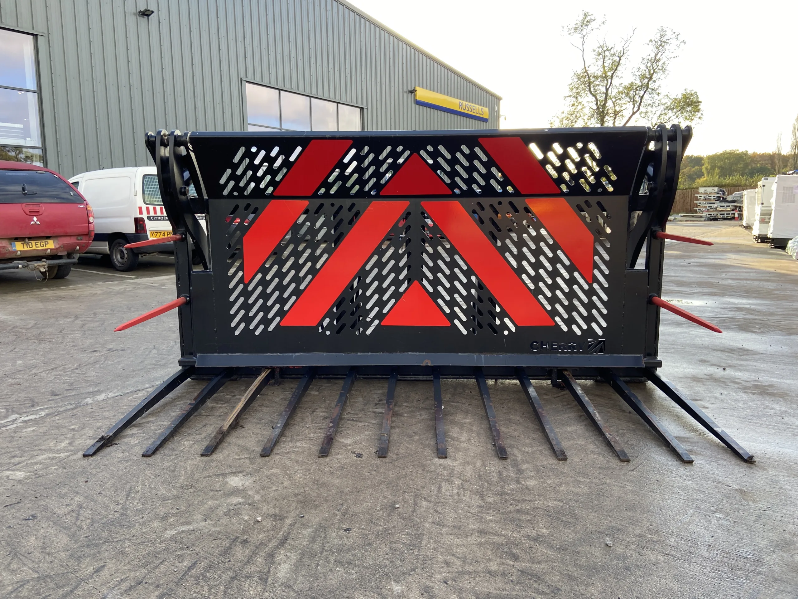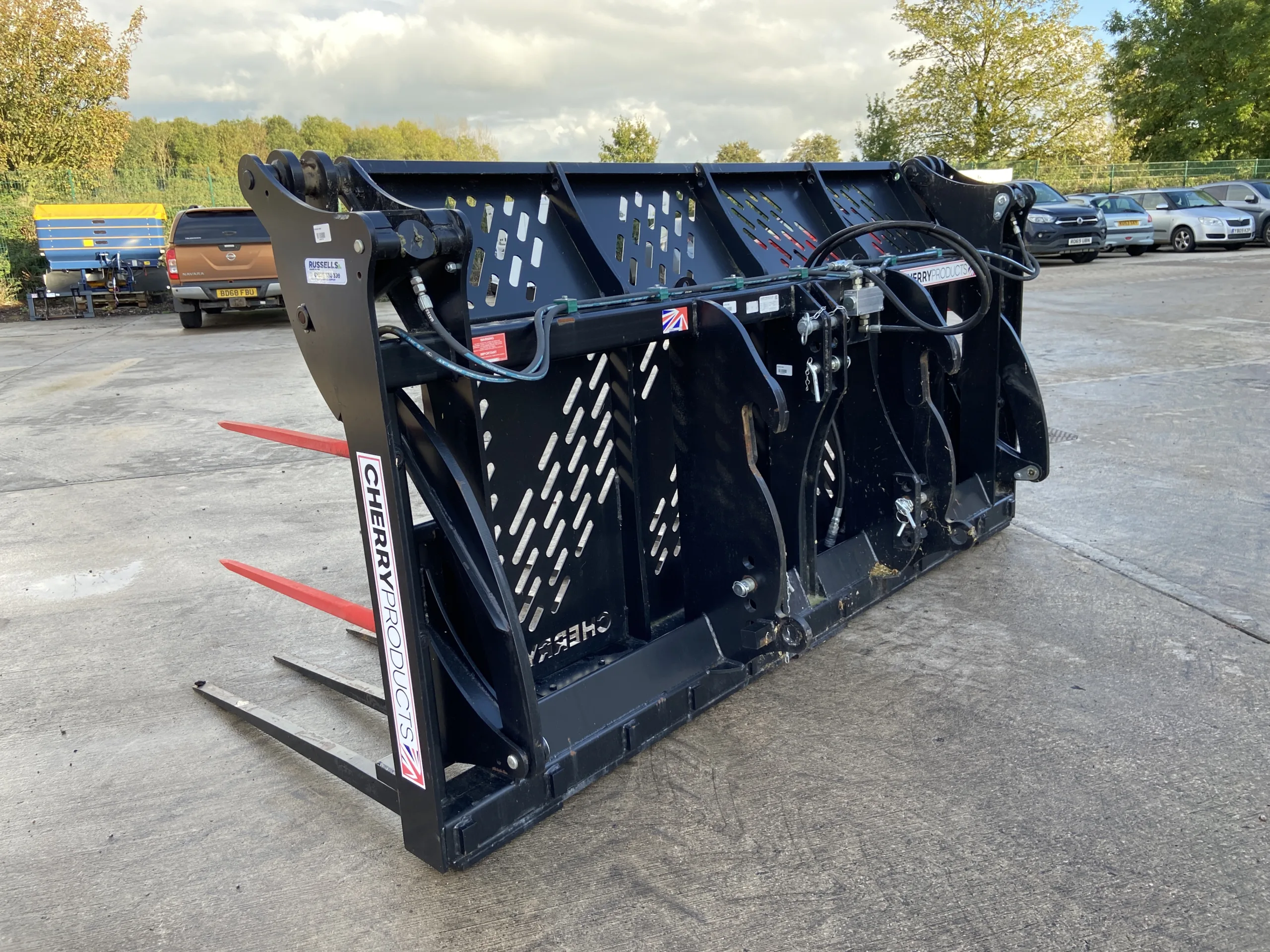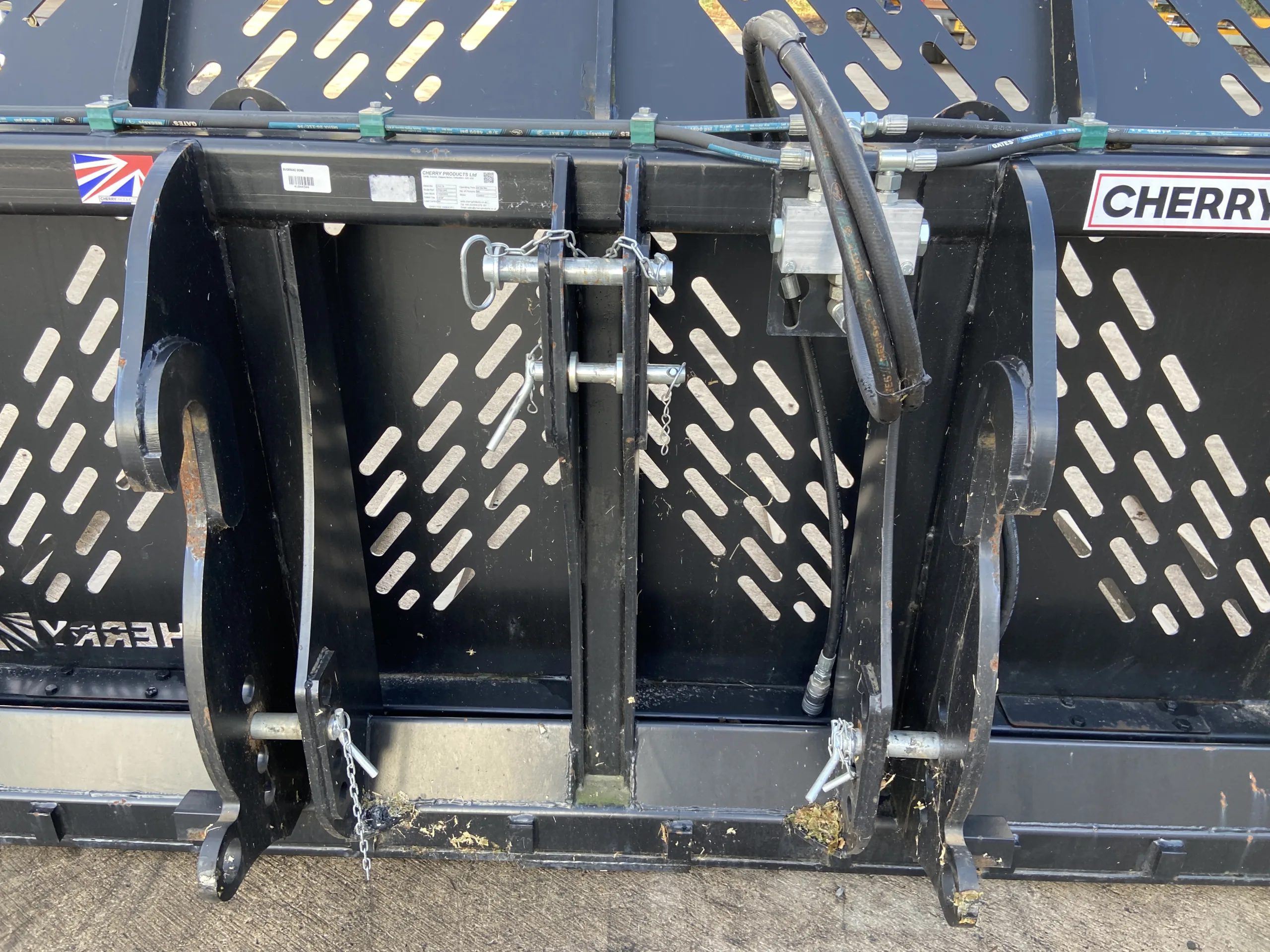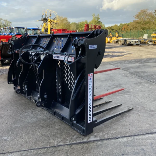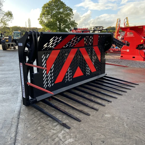 Cherry CF0510HD Heavy Duty 10FT Push Off Buckrake, Volvo BM Brackets & 3 Point Linkage Mounted, 3/4" Flat face Fittings, 1x Male, 1x Female.