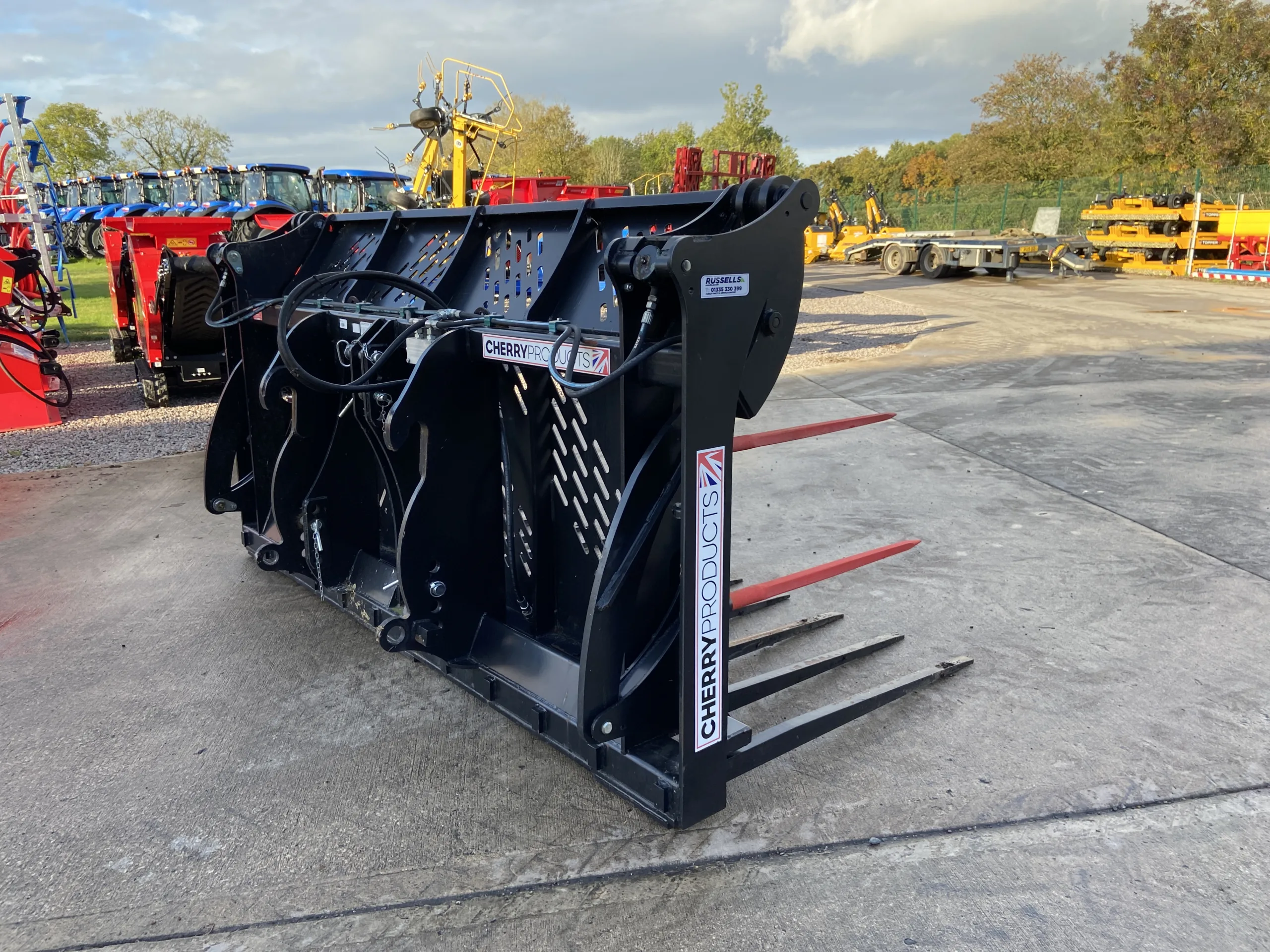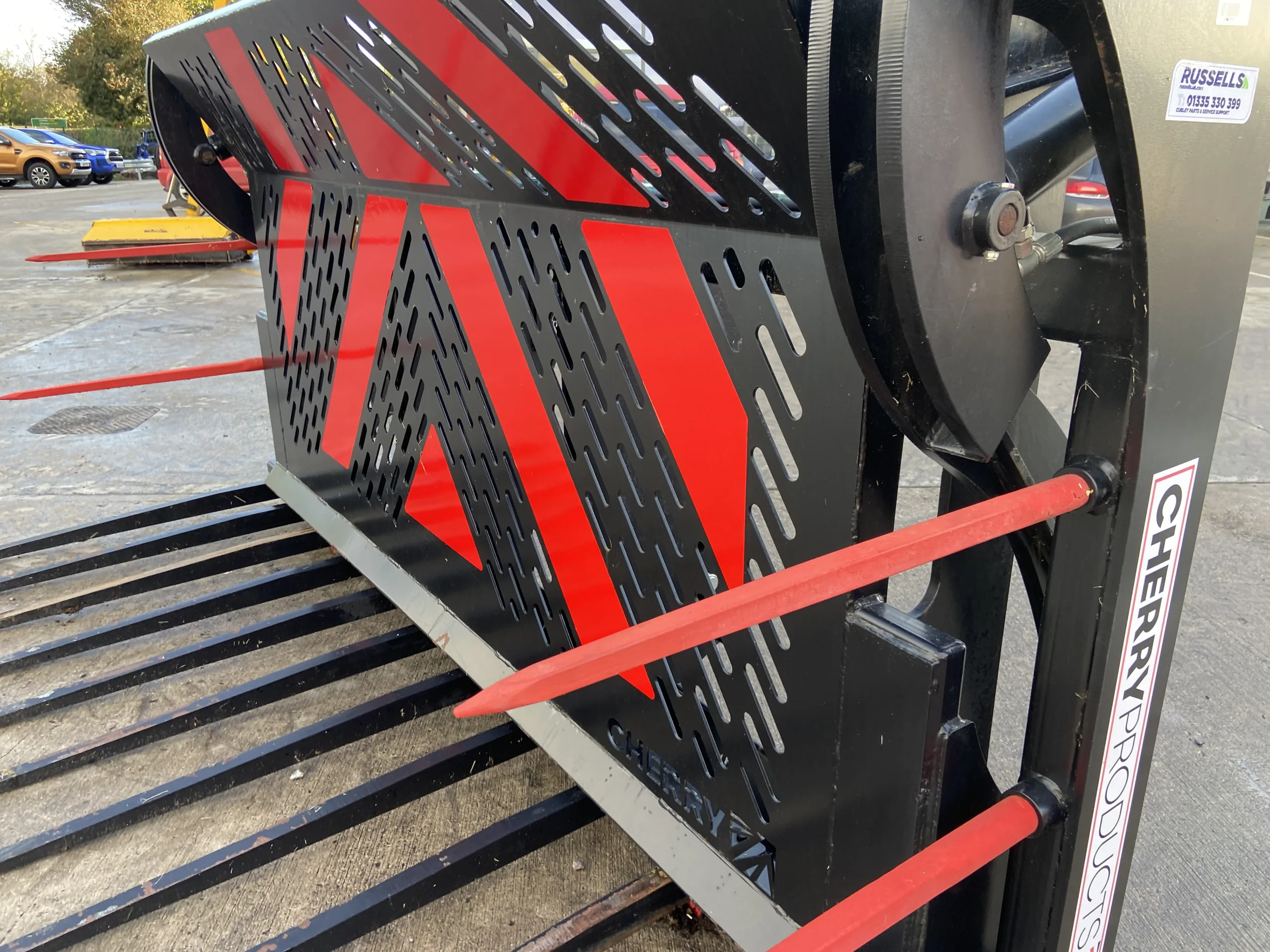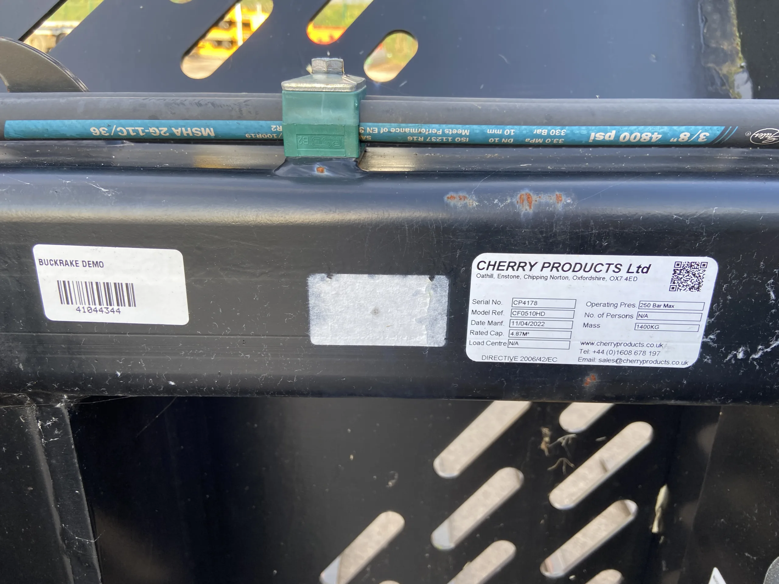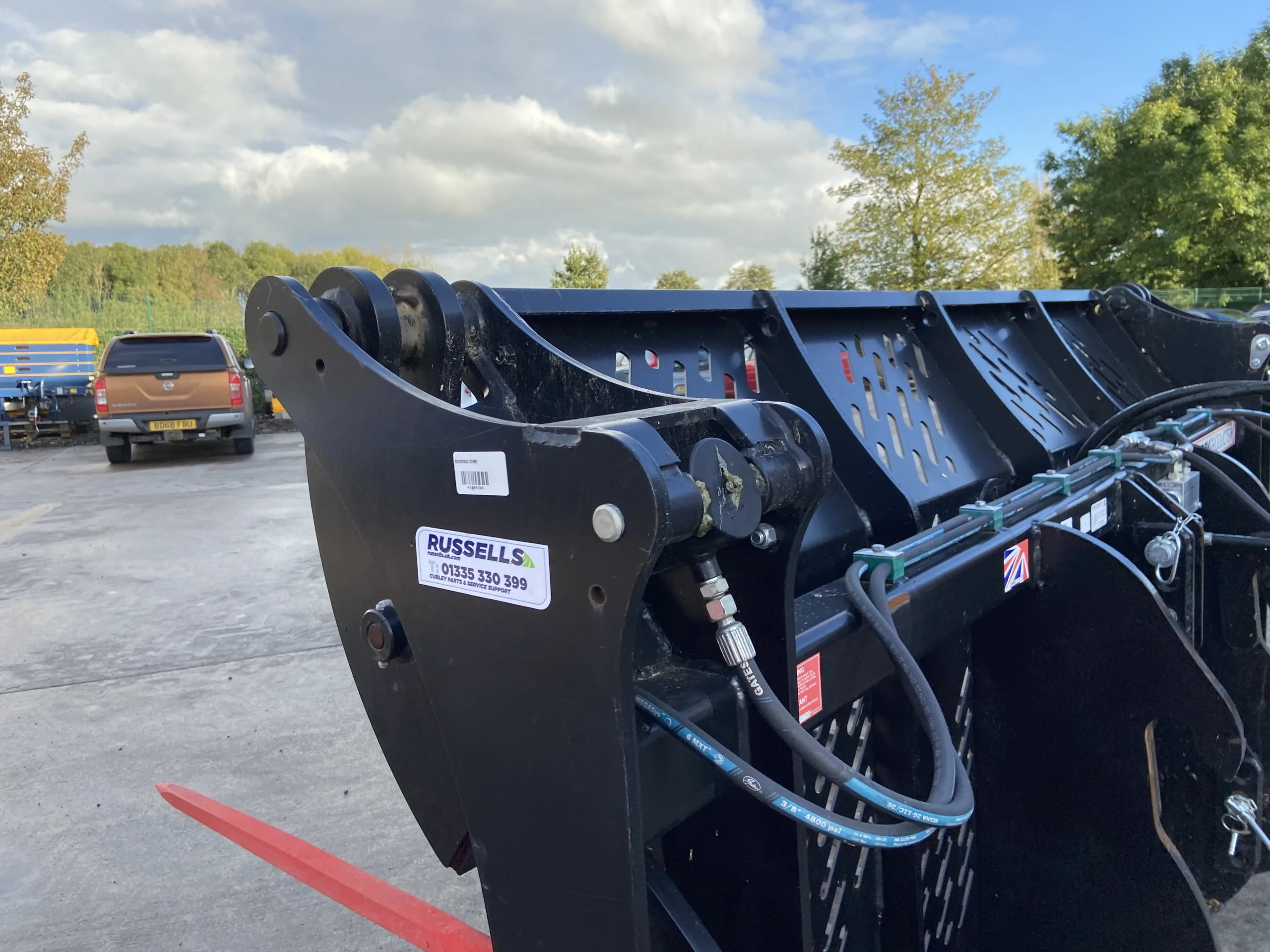 Cherry CF0510HD Heavy Duty 10FT Push Off Buckrake, Volvo BM Brackets & 3 Point Linkage Mounted, 3/4" Flat face Fittings, 1x Male, 1x Female.