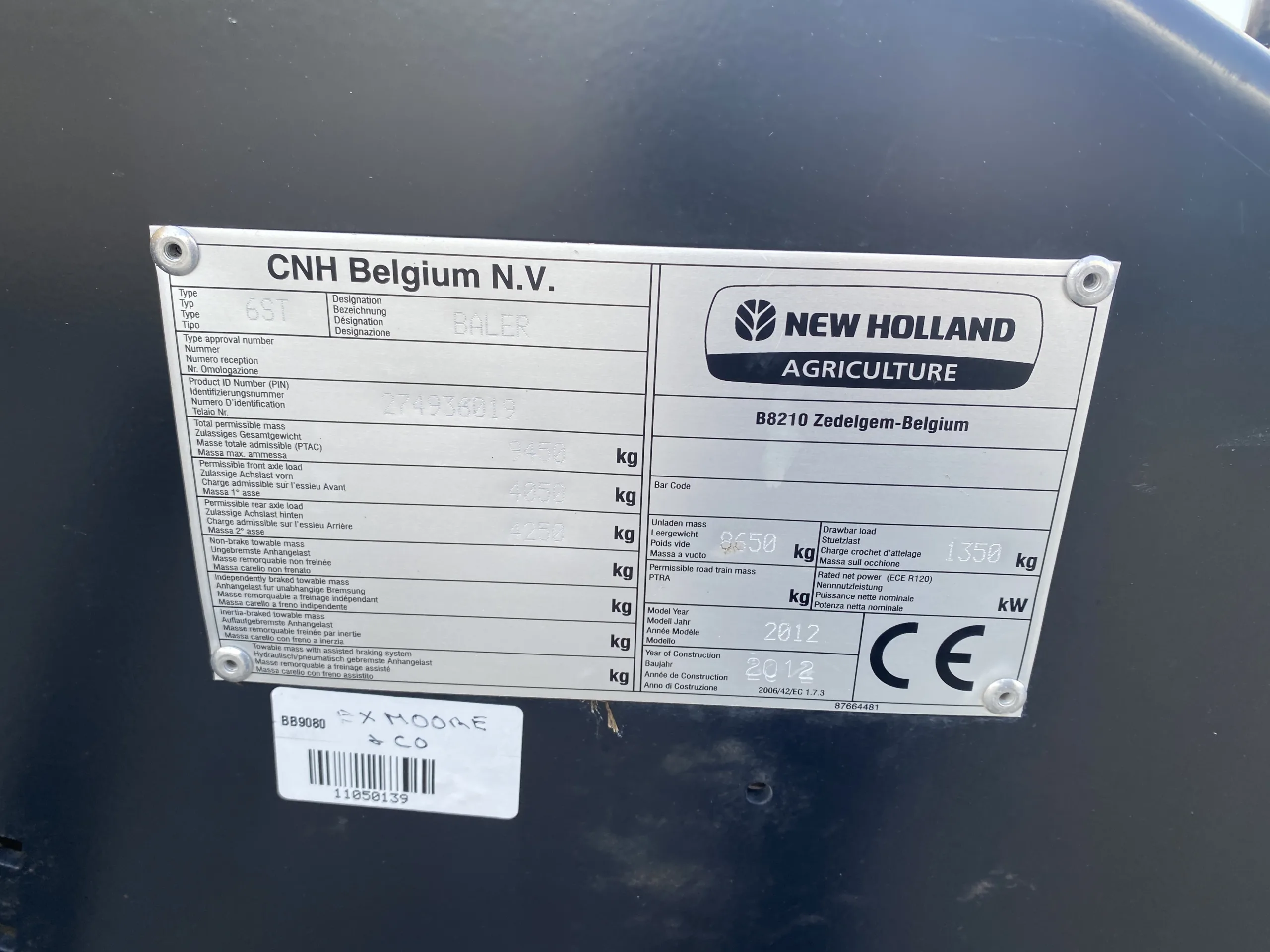 New Holland BB9080 Square Baler, year 2012, 41000 bales, Tandem Axle, Std Ejector, 2 Piece Chute, Quick Fill Grease Pump, Flashing Light, 500/50-17.0 tyres.