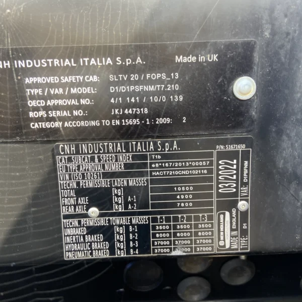 New Holland T7.210, 2022, 612 hours, 50kph Range Command Classic, Air Brakes, Intellivew 4, Full RTK Auto Guidance, Front linkage and Couplers with 2x MMV, 4 Remotes, 110L Pump, HTS1, Radio, Power Beyond, 8 LED's, Beacon. 540/65R28 & 650/65R38 Bridgestone tyres.
