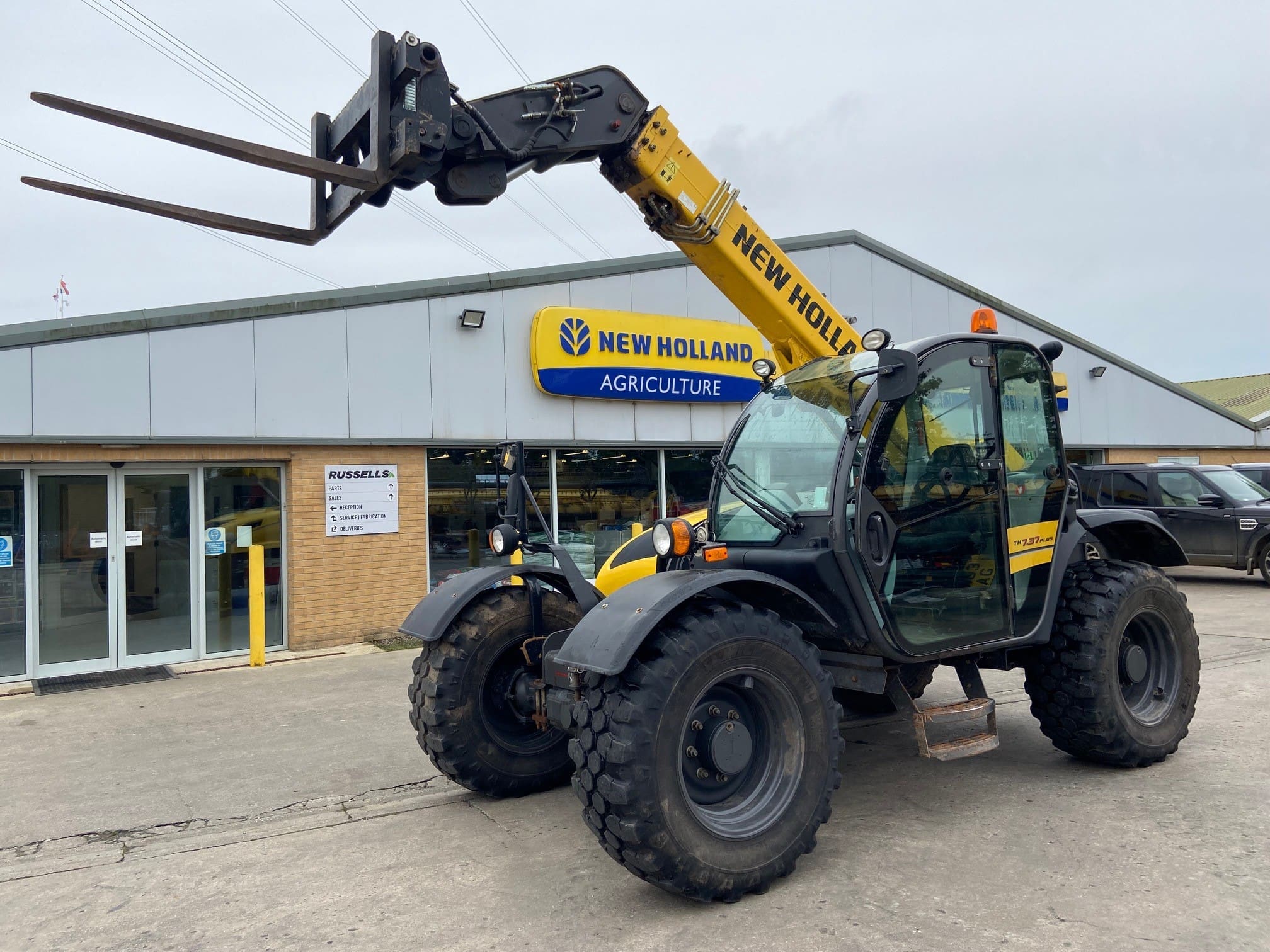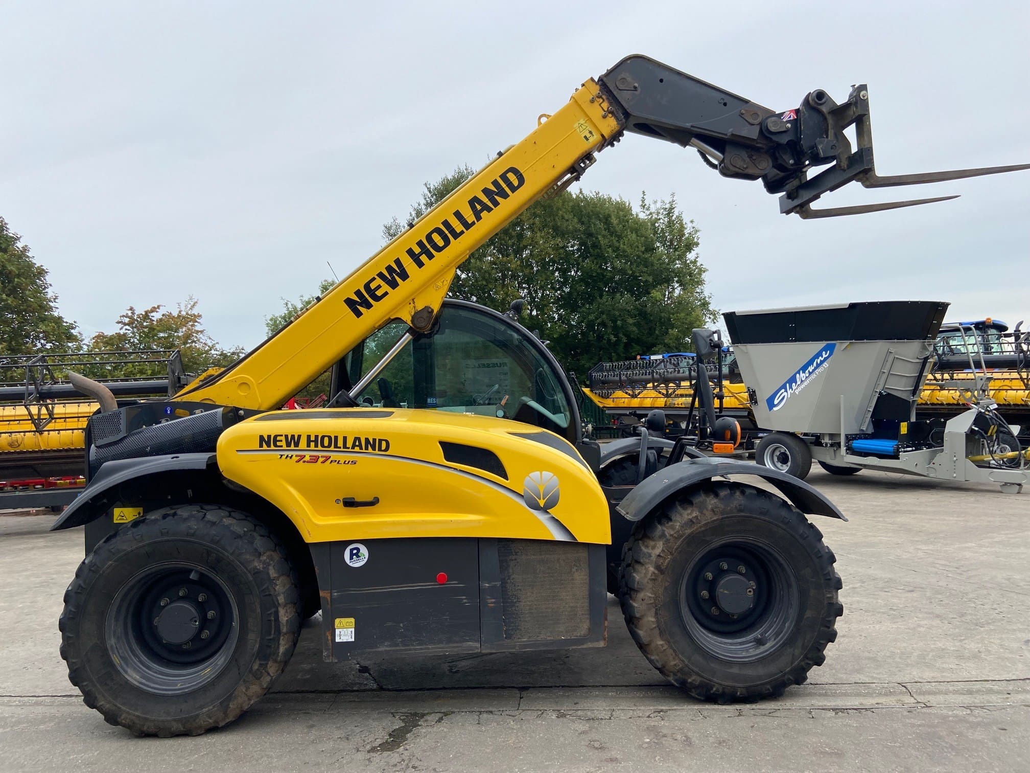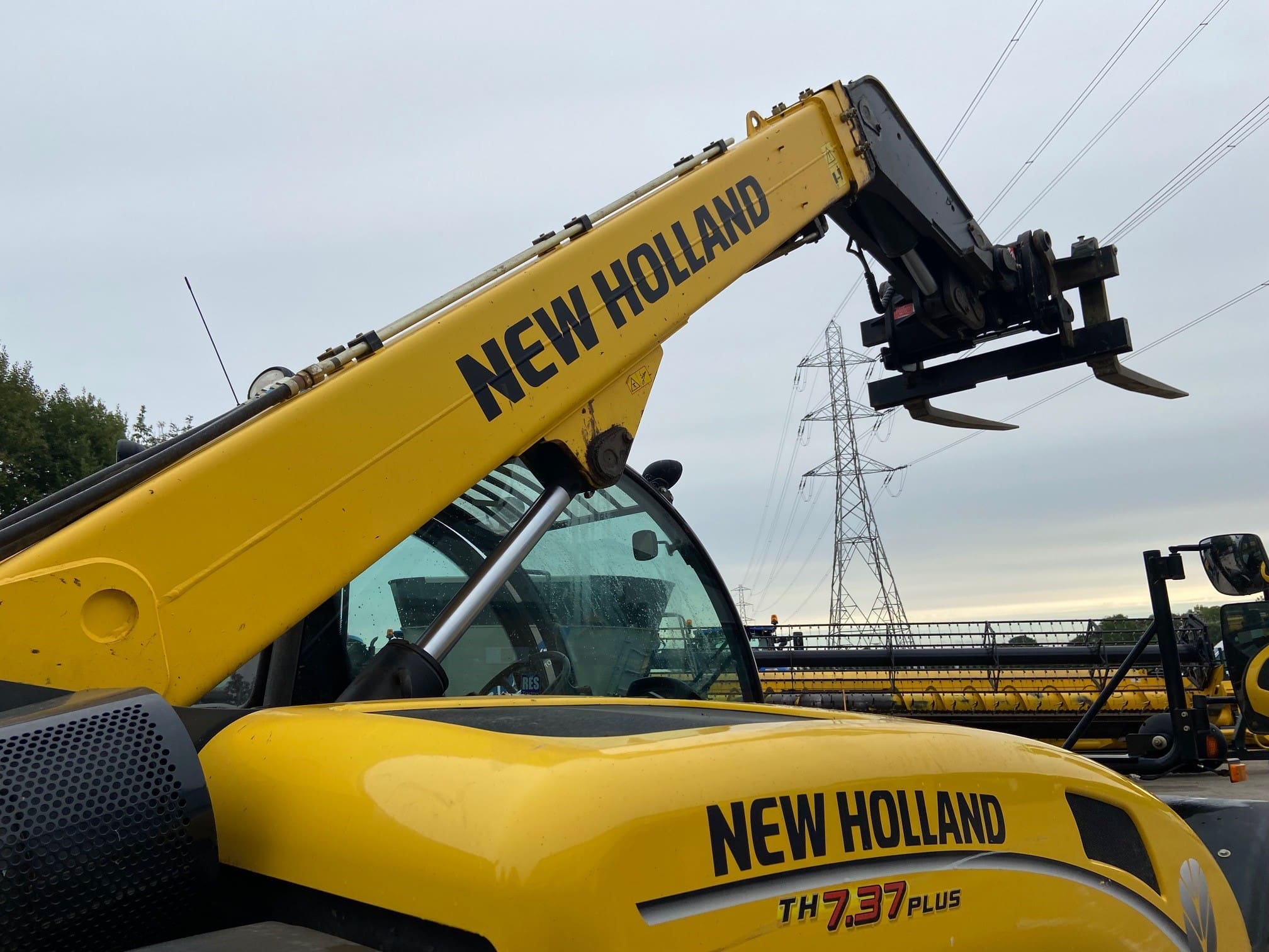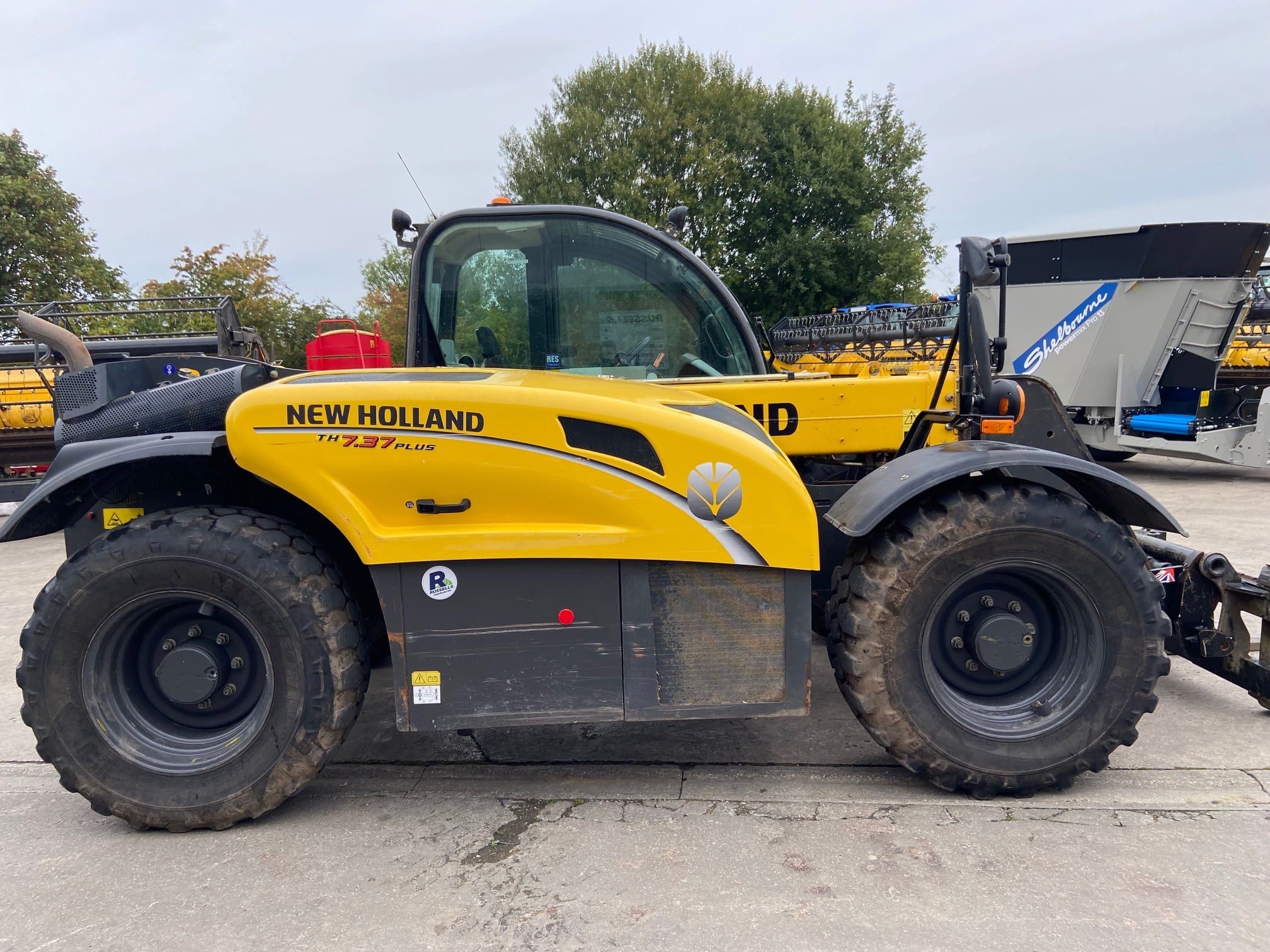 New Holland TH7.37 Plus Telehandler, Year 2019, 4042 hours, Manitou headstock, third service, hydraulic locking pin, pallet tines, air con, 460/70R24 Michelin Bibload tyres.