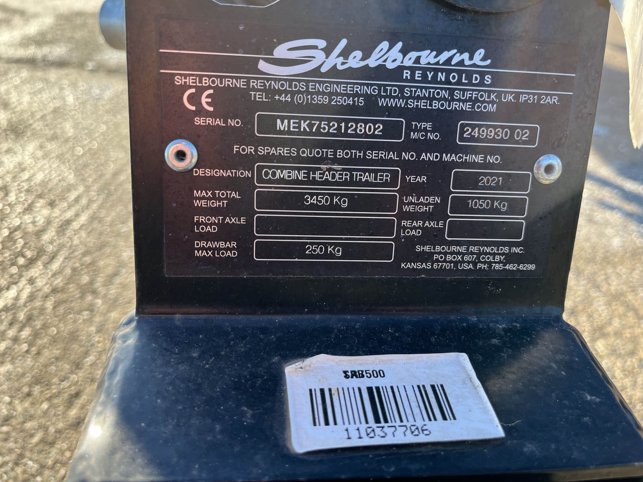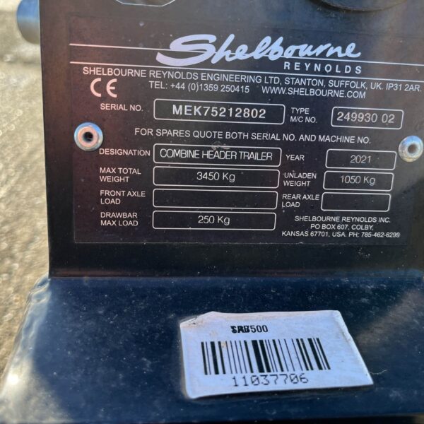 Shelbourne Reynolds C 7500 Single Axle Header Trailer.