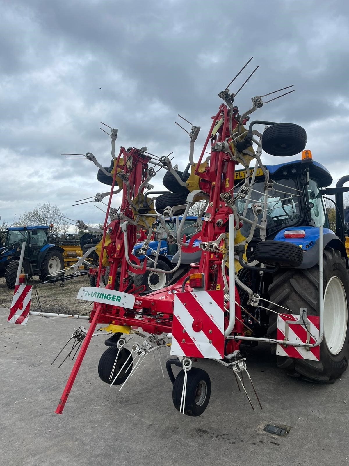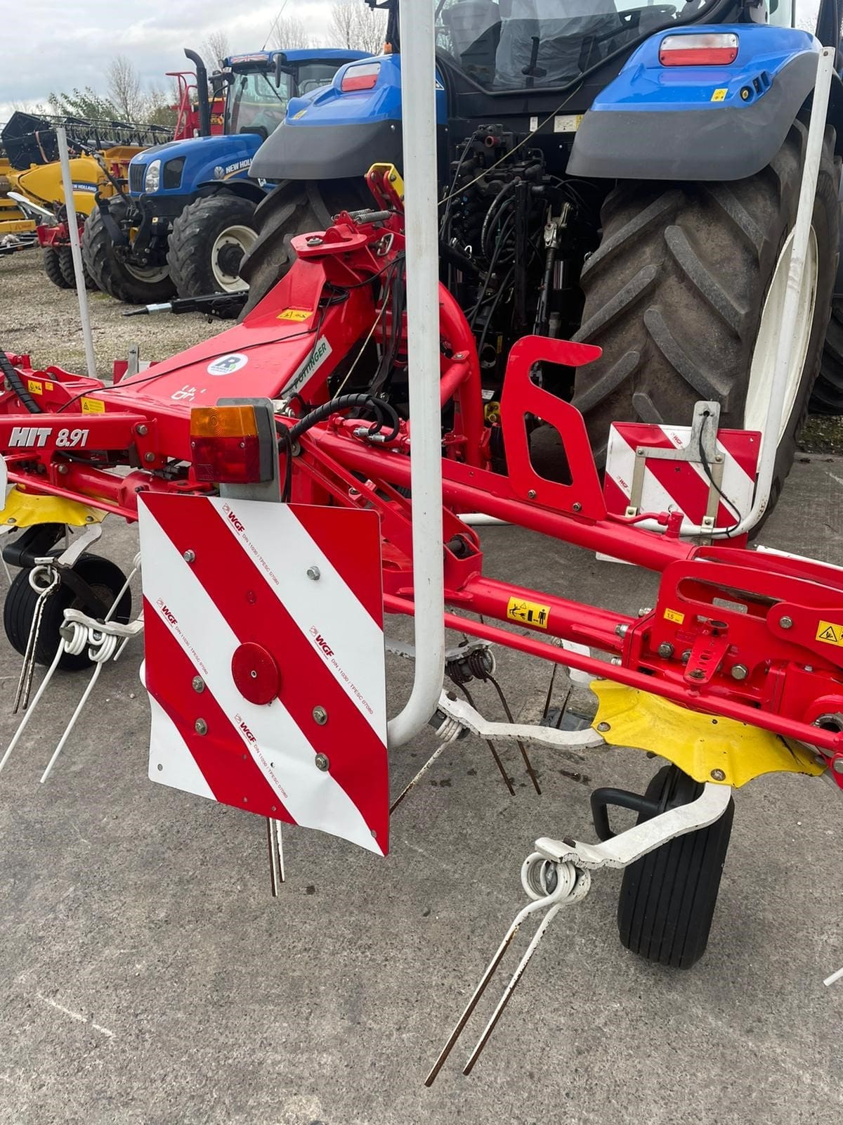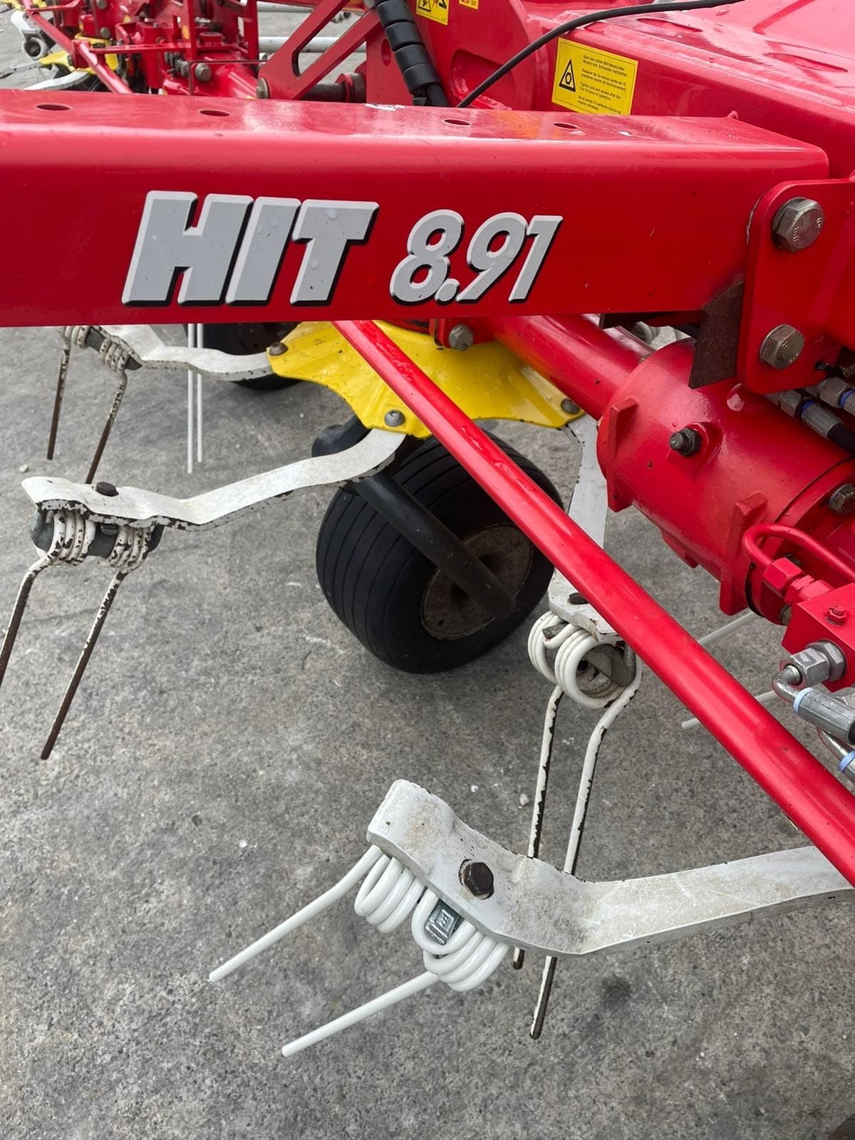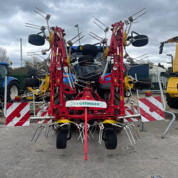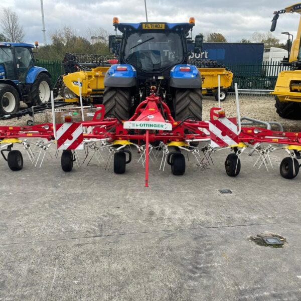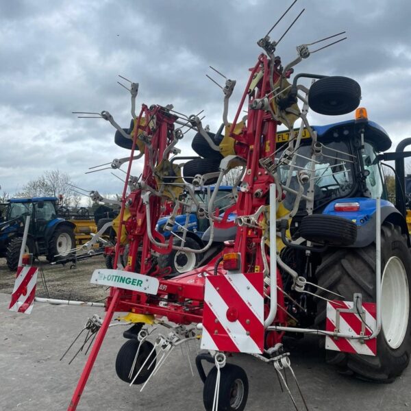 Pottinger HIT 8.91 Mounted Tedder, Model year 2015 ,8 Rotors , 8.86M (9m working width), 1280kg weight, Lights, Chevron boards front and rear, transport mode, hydraulic folding, pivot on headstock hydraulics with wheels to run tedder on angle (Fenceline spreading system), multitast jockey wheel.