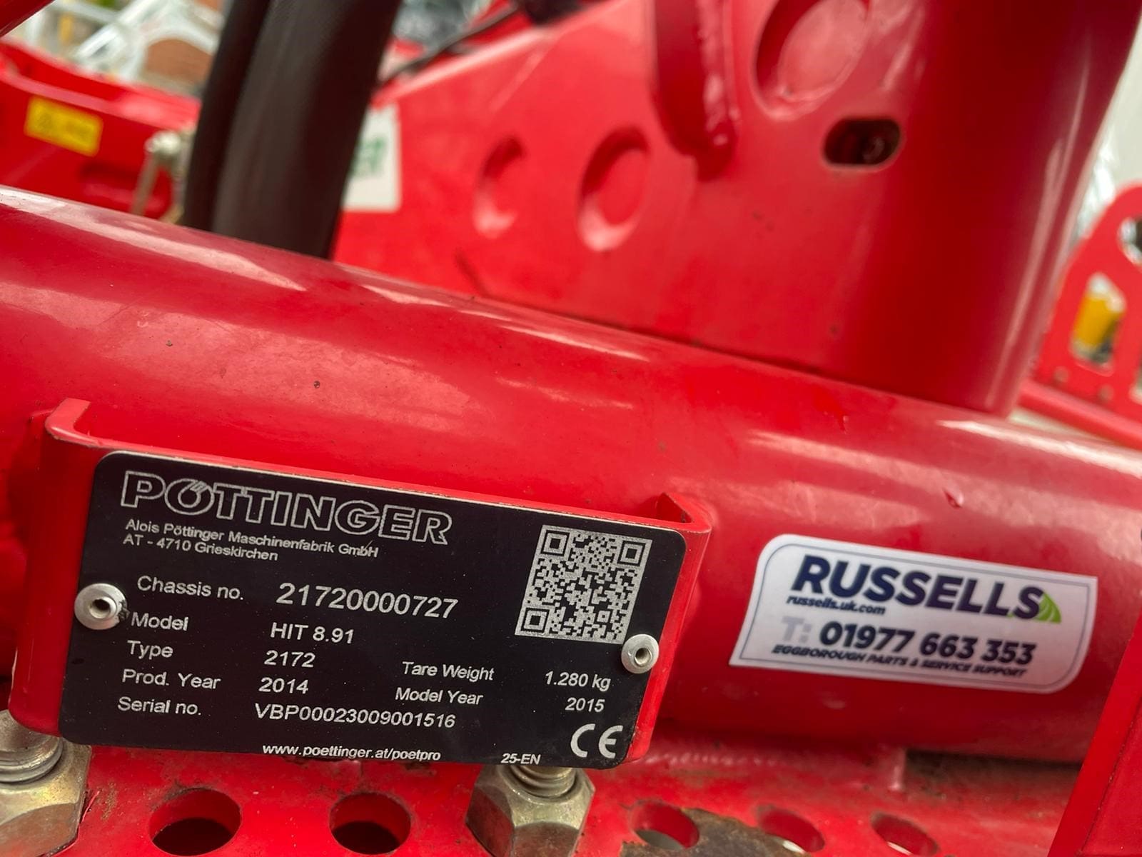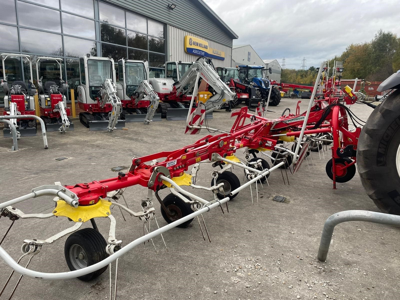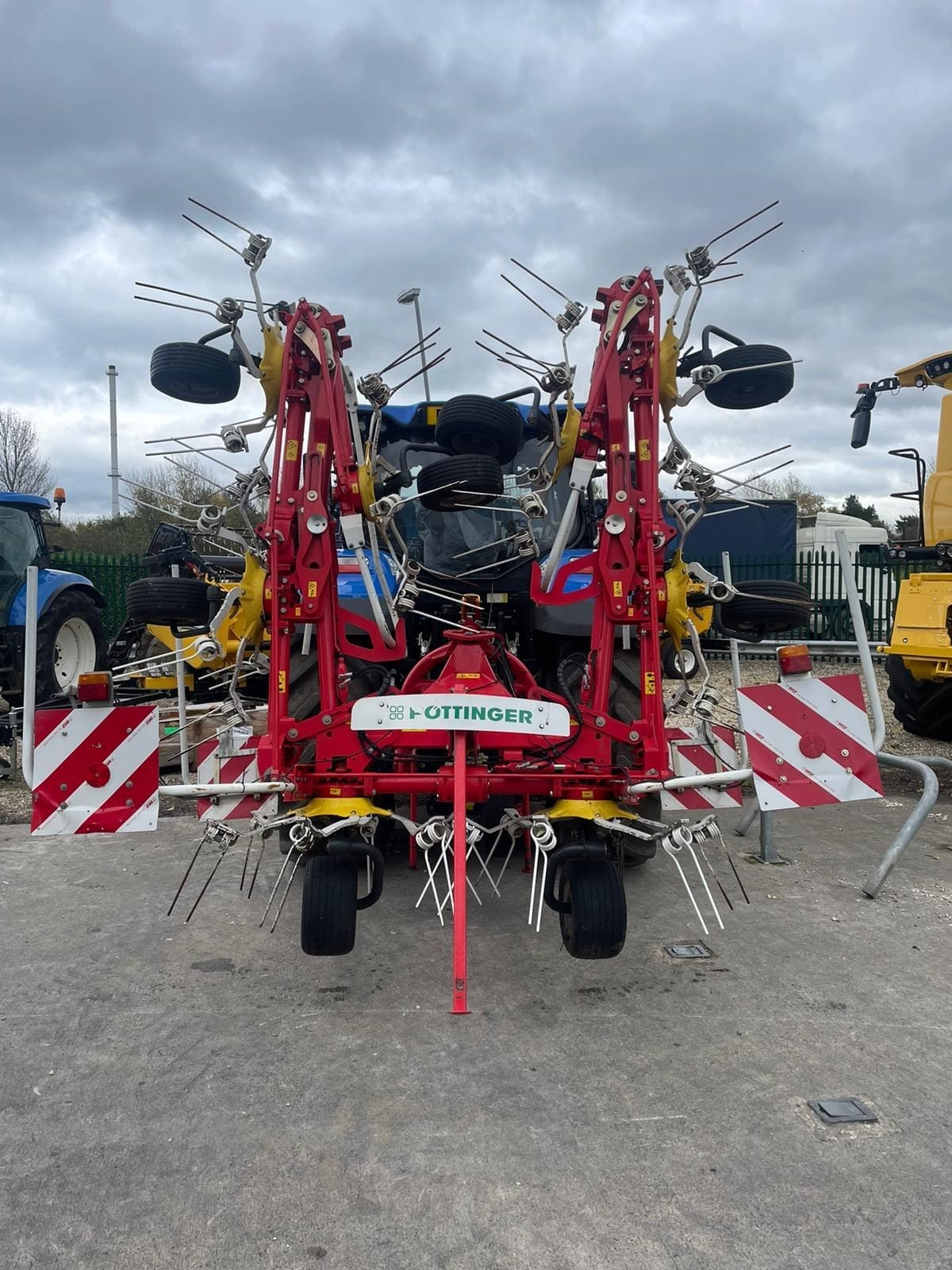 Pottinger HIT 8.91 Mounted Tedder, Model year 2015 ,8 Rotors , 8.86M (9m working width), 1280kg weight, Lights, Chevron boards front and rear, transport mode, hydraulic folding, pivot on headstock hydraulics with wheels to run tedder on angle (Fenceline spreading system), multitast jockey wheel.