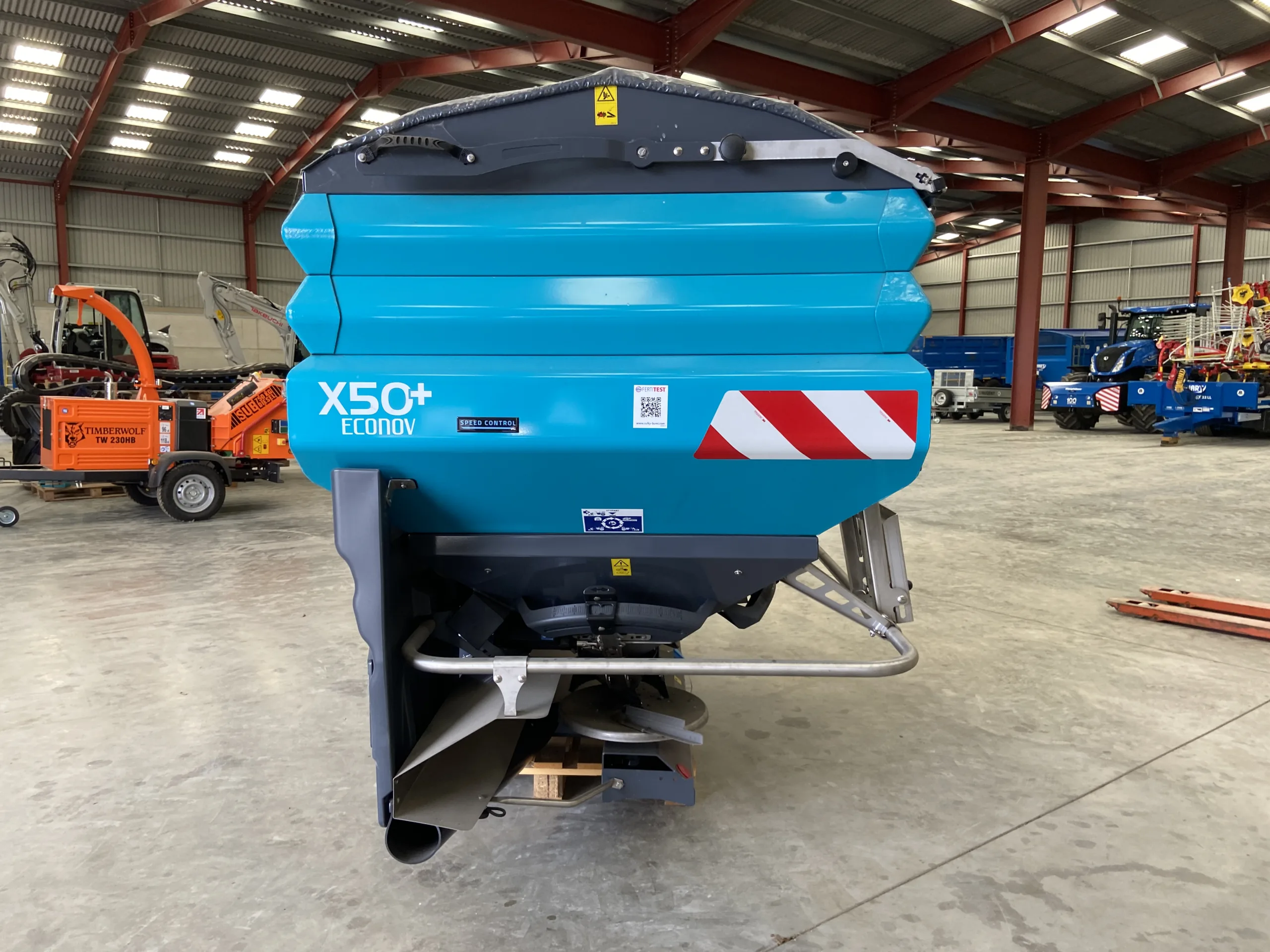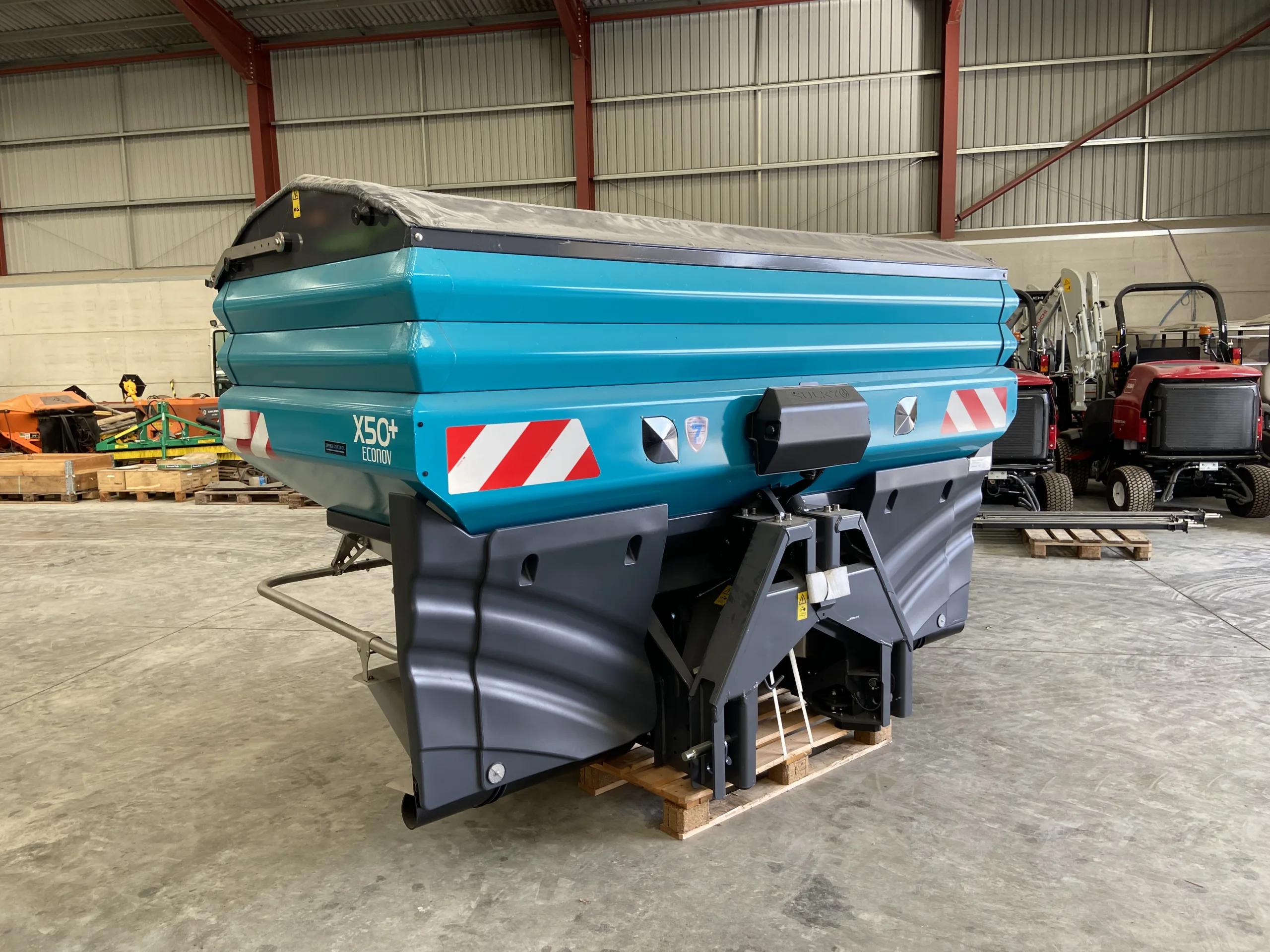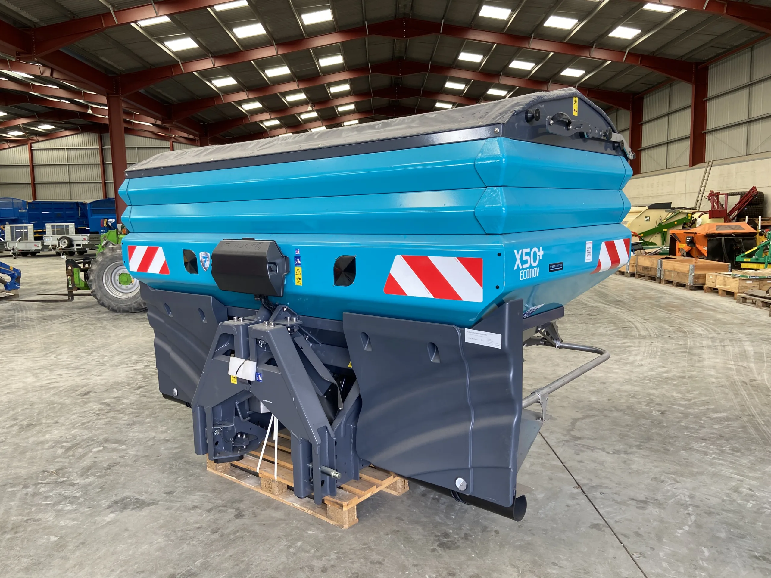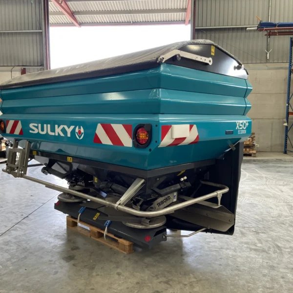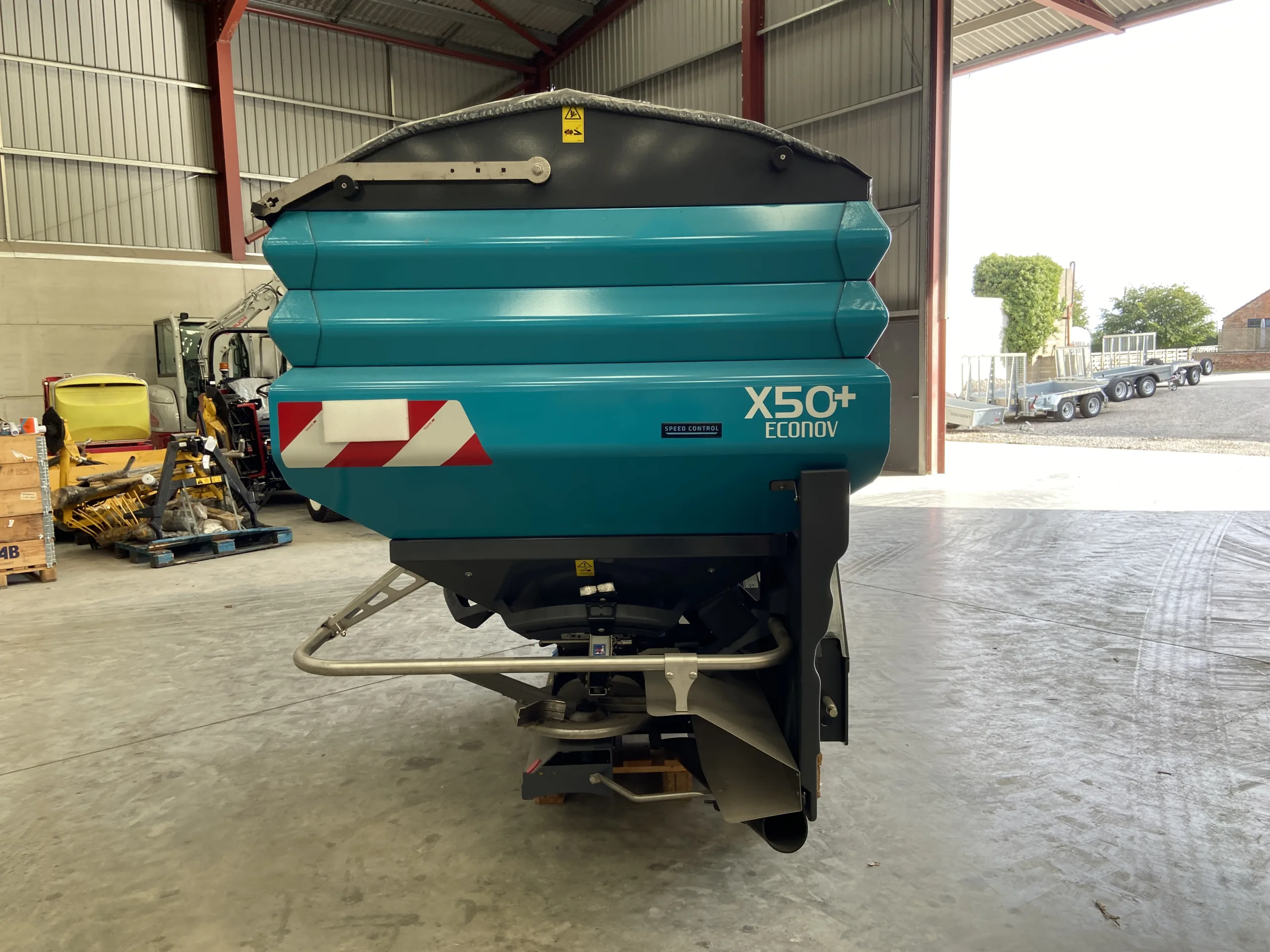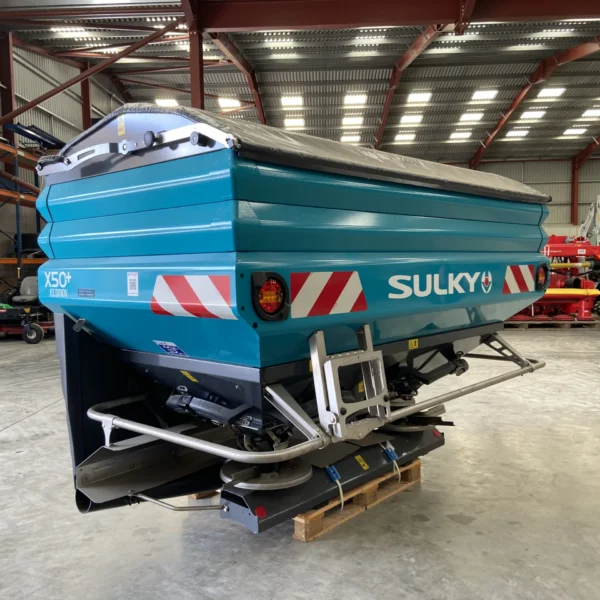 X50+ Elec Econov Speed Control 32-44m, shop soiled, 2x Hopper extensions 800L each, Manual hopper cover, Rubber mudguard extension, R/L level sensors (only for Isobus control kits), Overlap autocontrol kit, Fertilizer characterization kit, Anti compaction baffle.