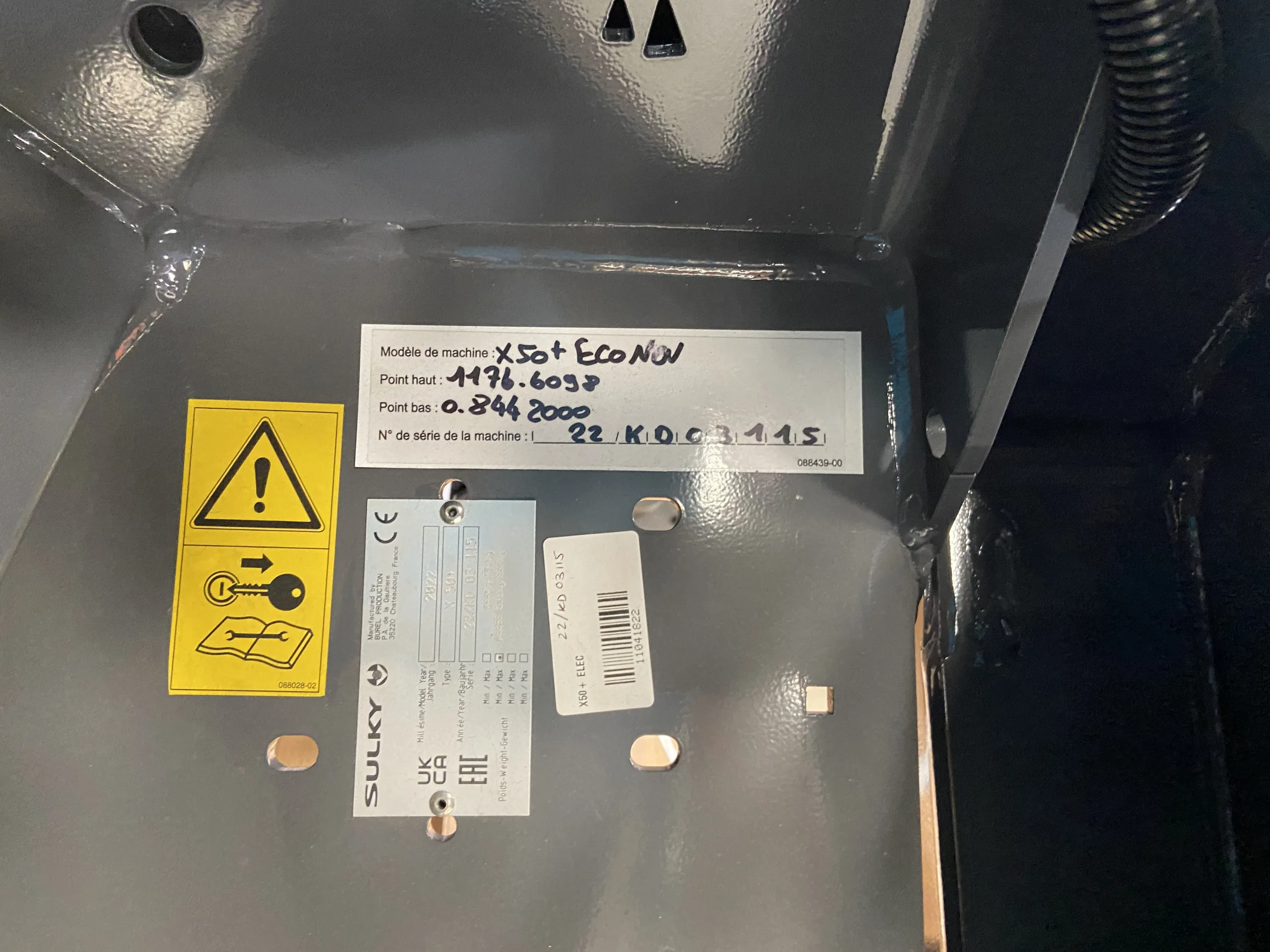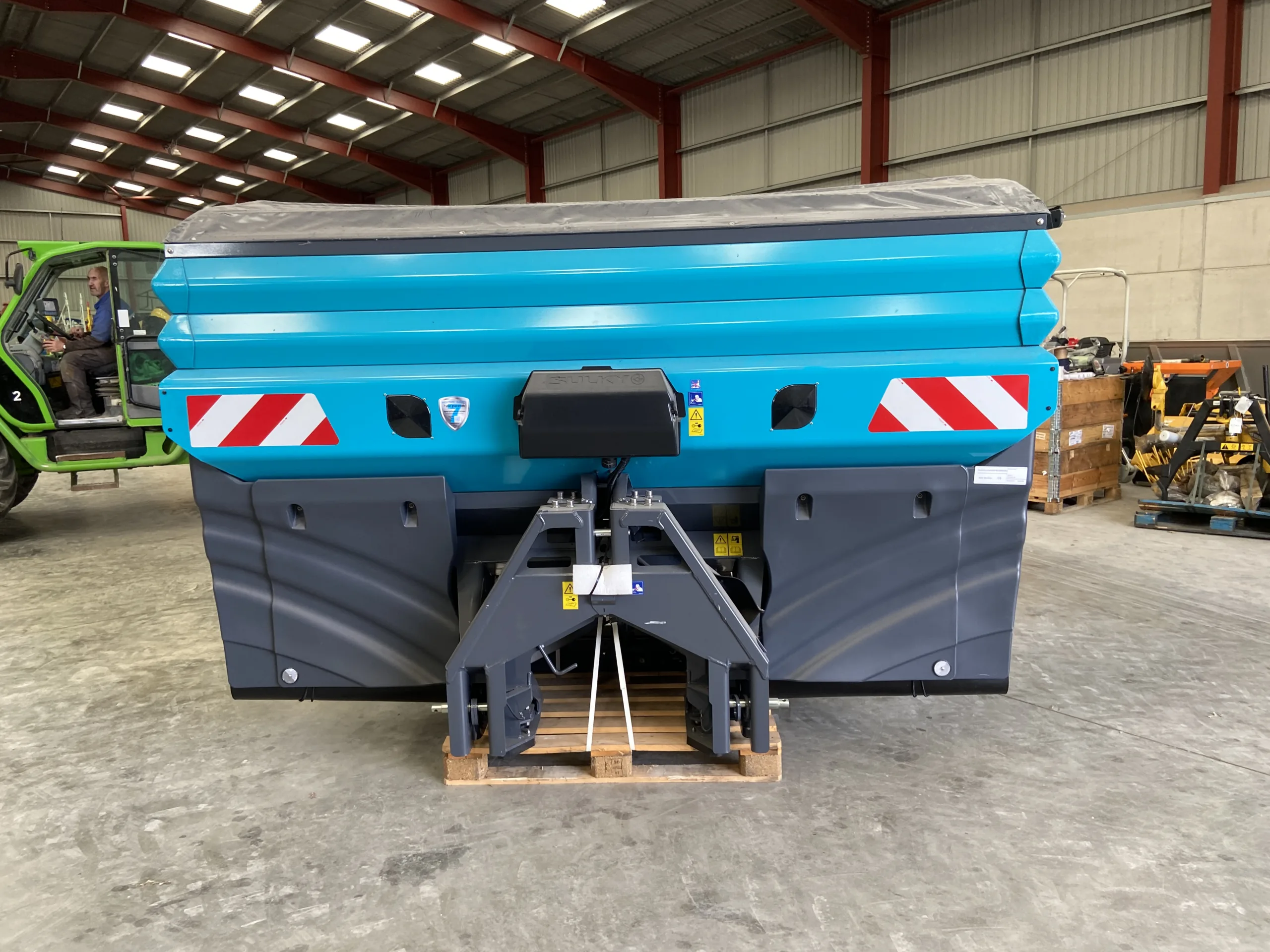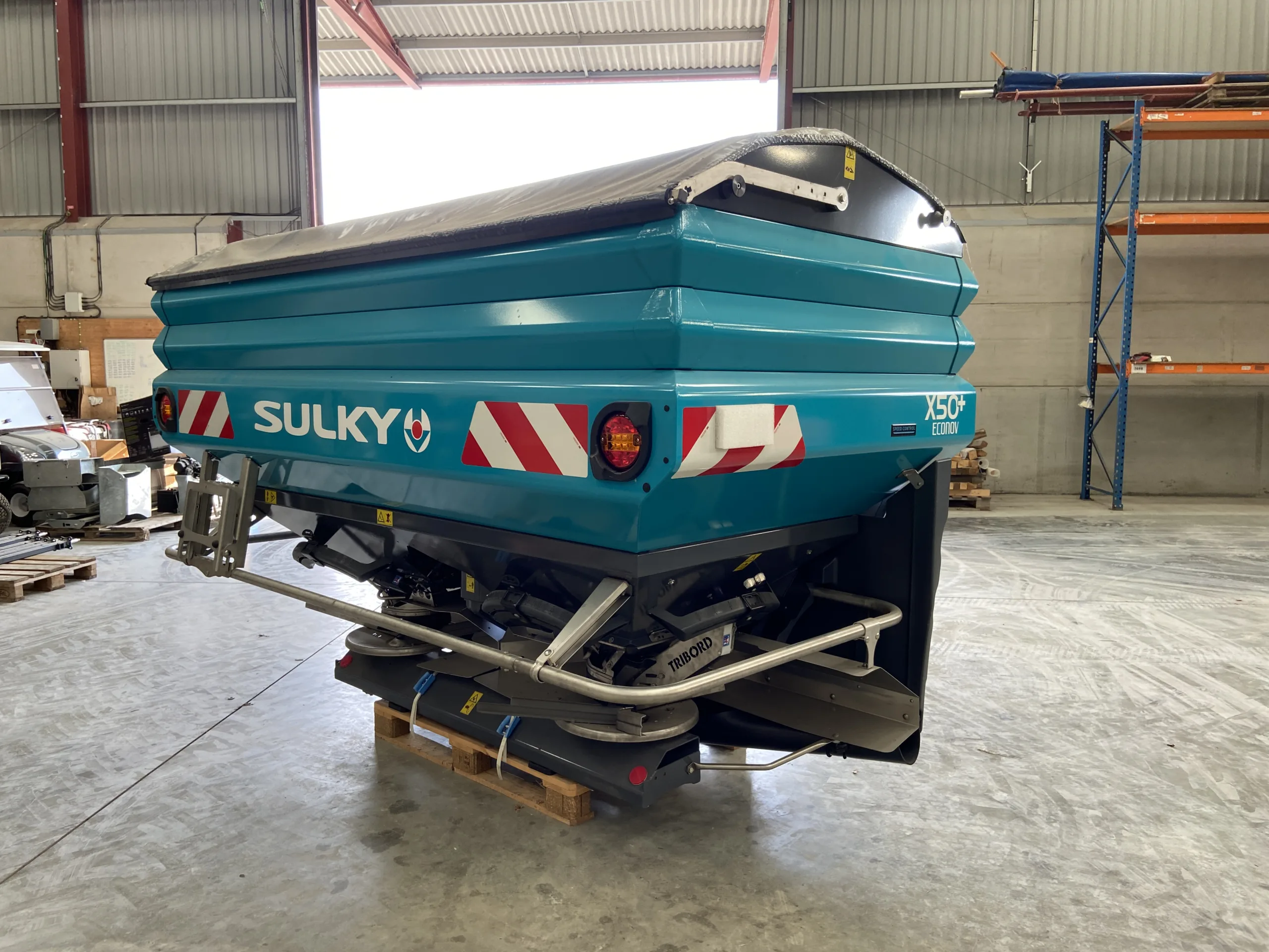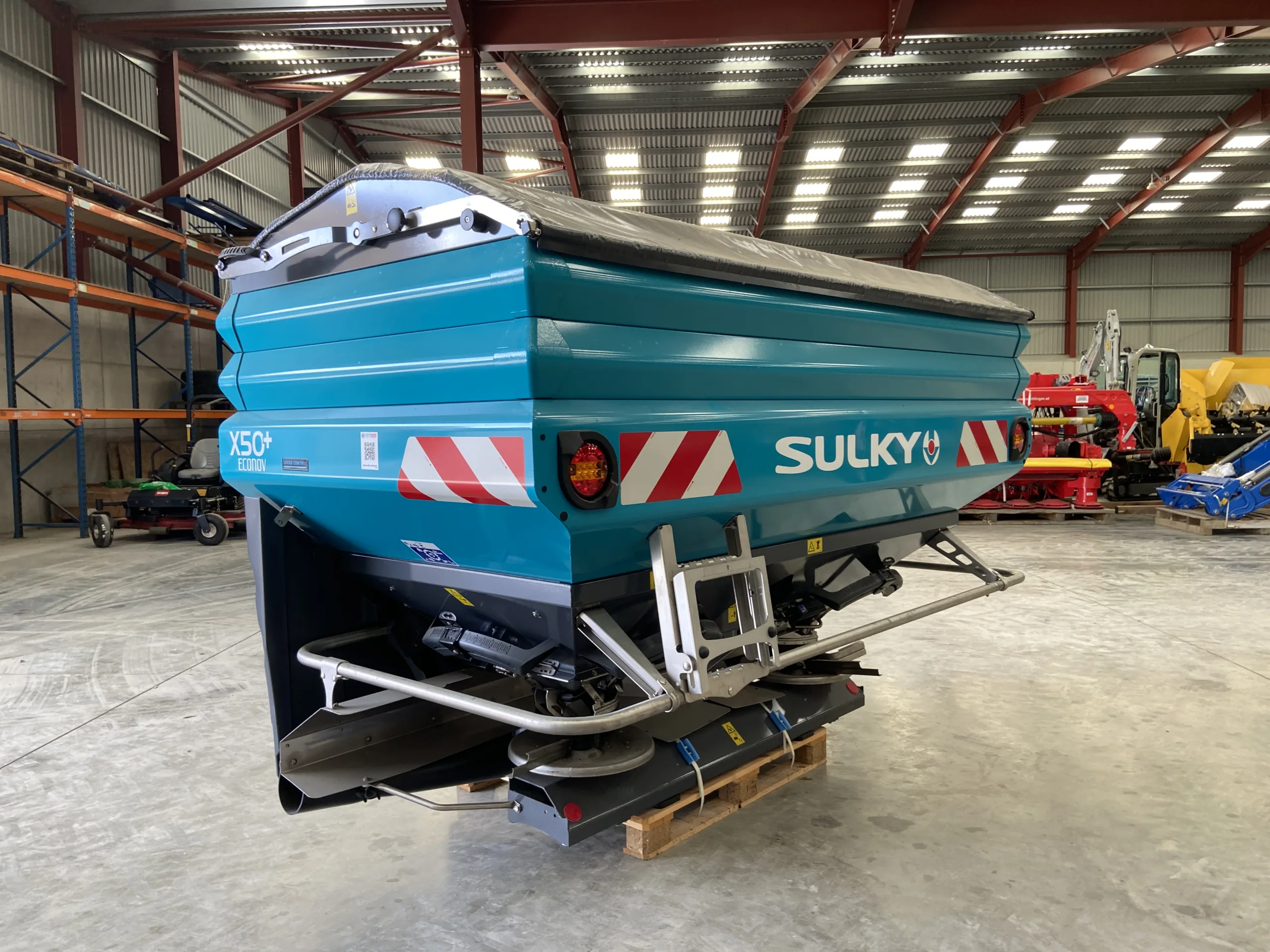 X50+ Elec Econov Speed Control 32-44m, shop soiled, 2x Hopper extensions 800L each, Manual hopper cover, Rubber mudguard extension, R/L level sensors (only for Isobus control kits), Overlap autocontrol kit, Fertilizer characterization kit, Anti compaction baffle.