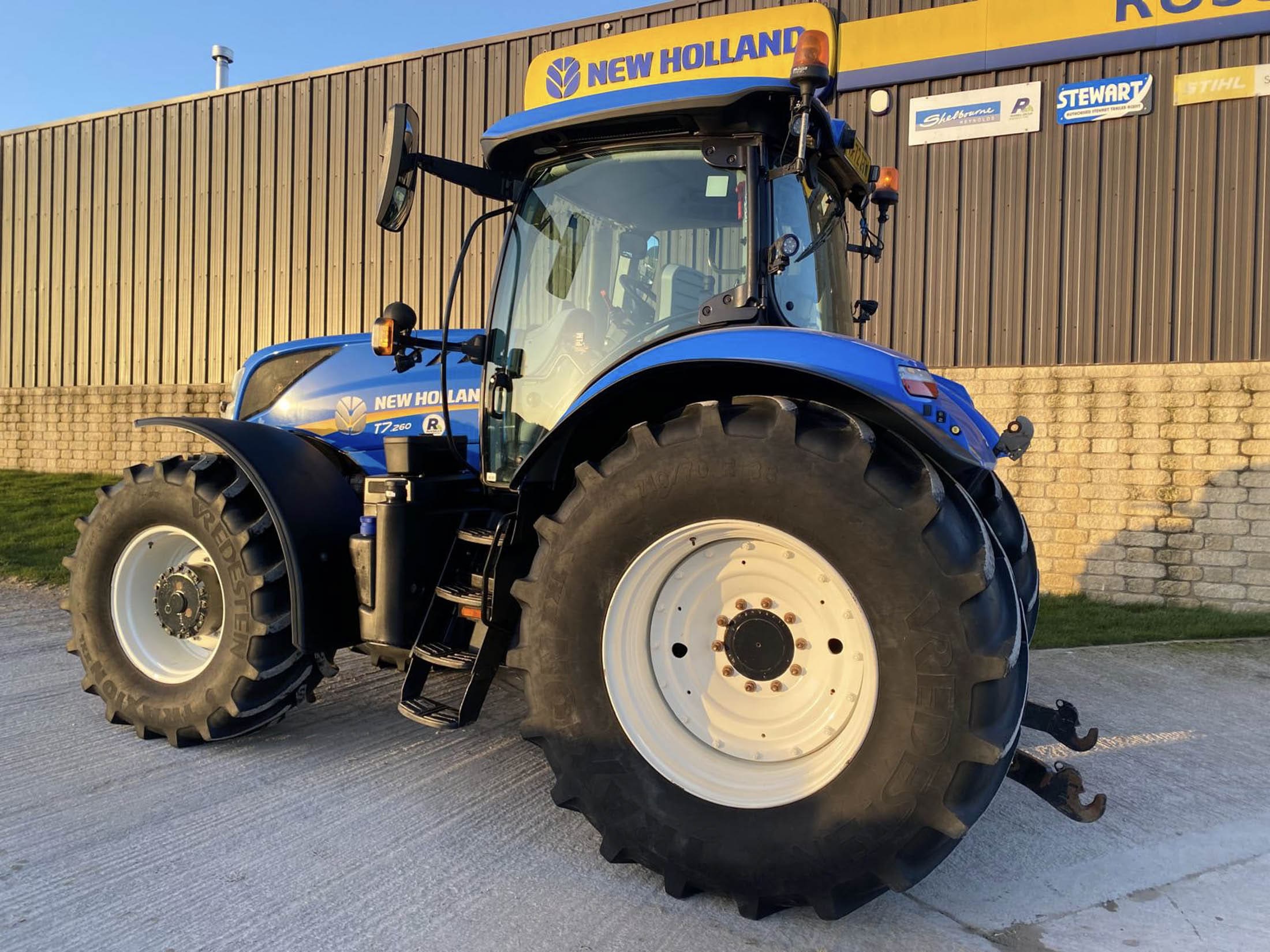 New Holland T7.260, year 2022, 3023 hours, Deluxe Pack, 50kph Power Command Classic, Degenhart front linkage and PTO, Exhaust Brake, 540E/1000 PTO, 150L Pump, 1MMV and Joystick, 4 Mech Remotes, 12 LED's, 710/70 R38 & 600/65 R28 at 60%.